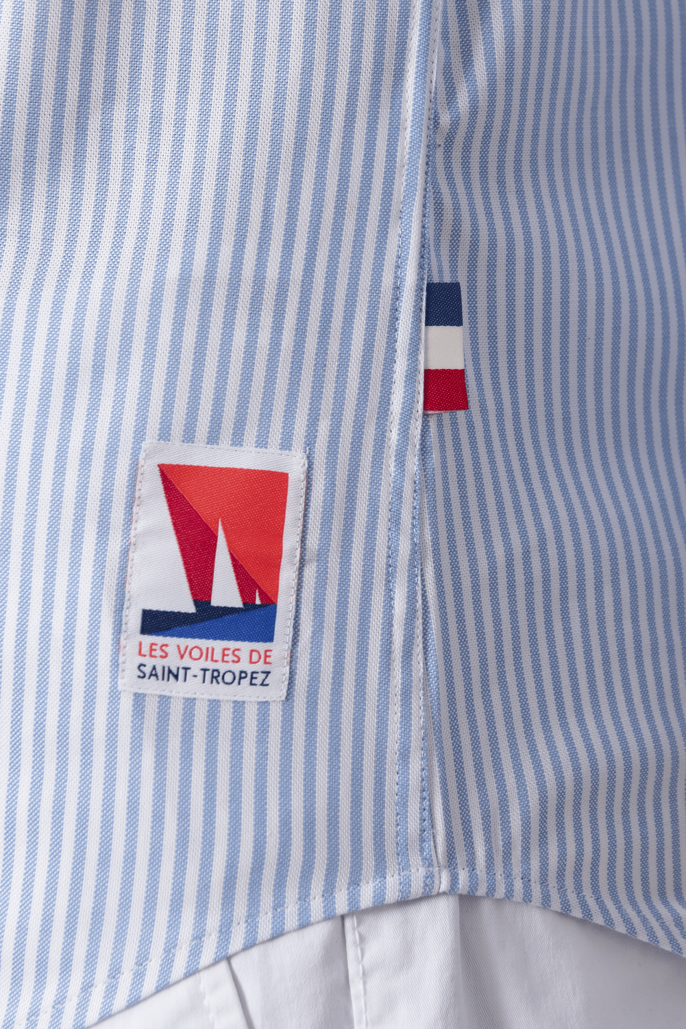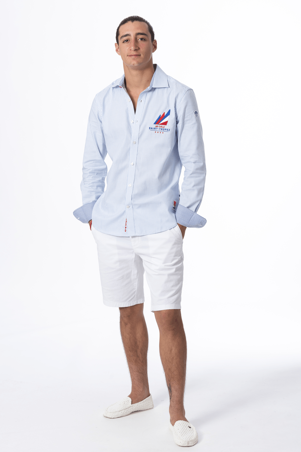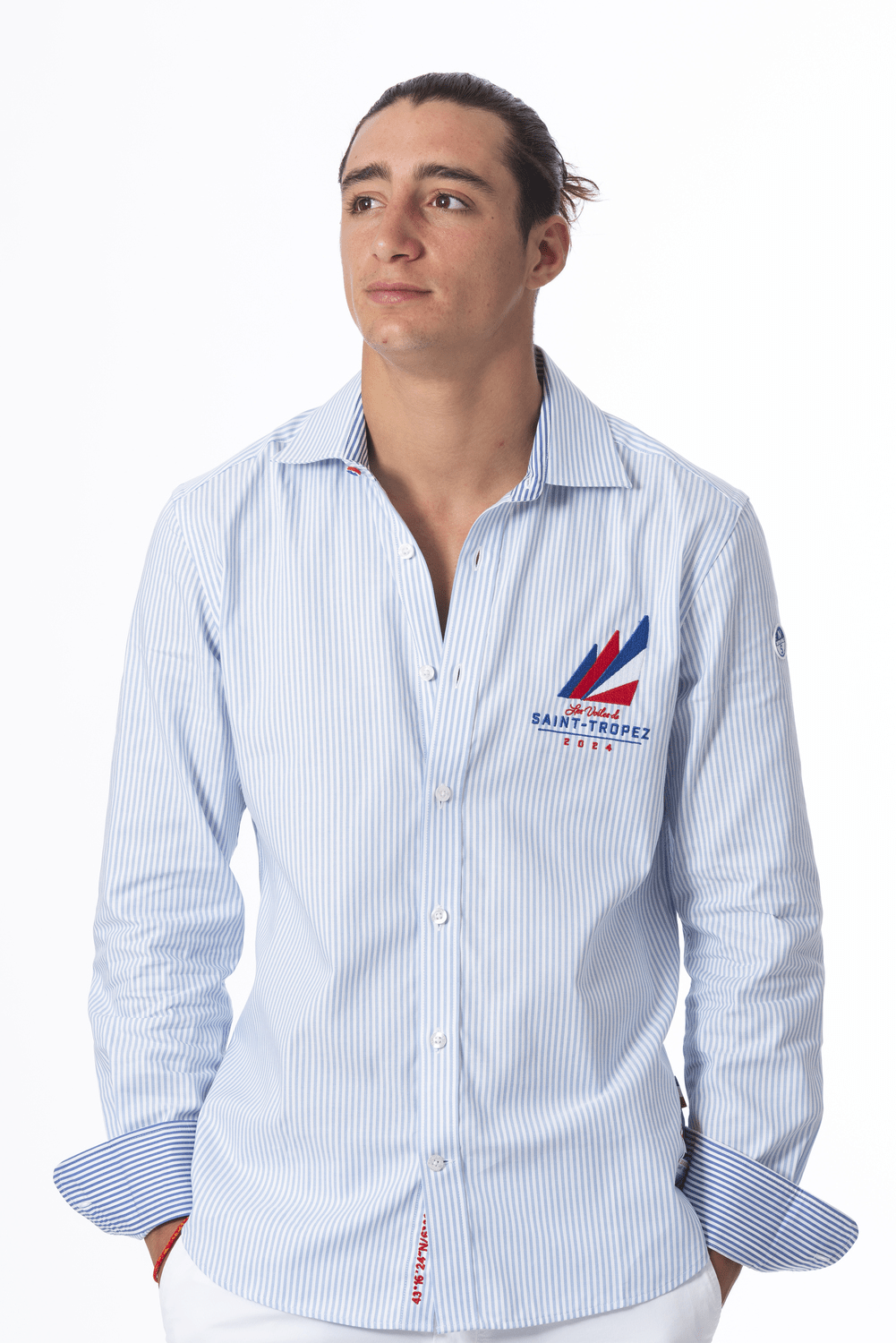 Chemise en coton oxford pour hommes.Chic et élégante, broderie côté cœur Les Voiles de Saint-Tropez, col à l’italienne.