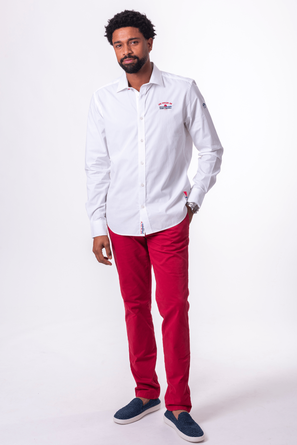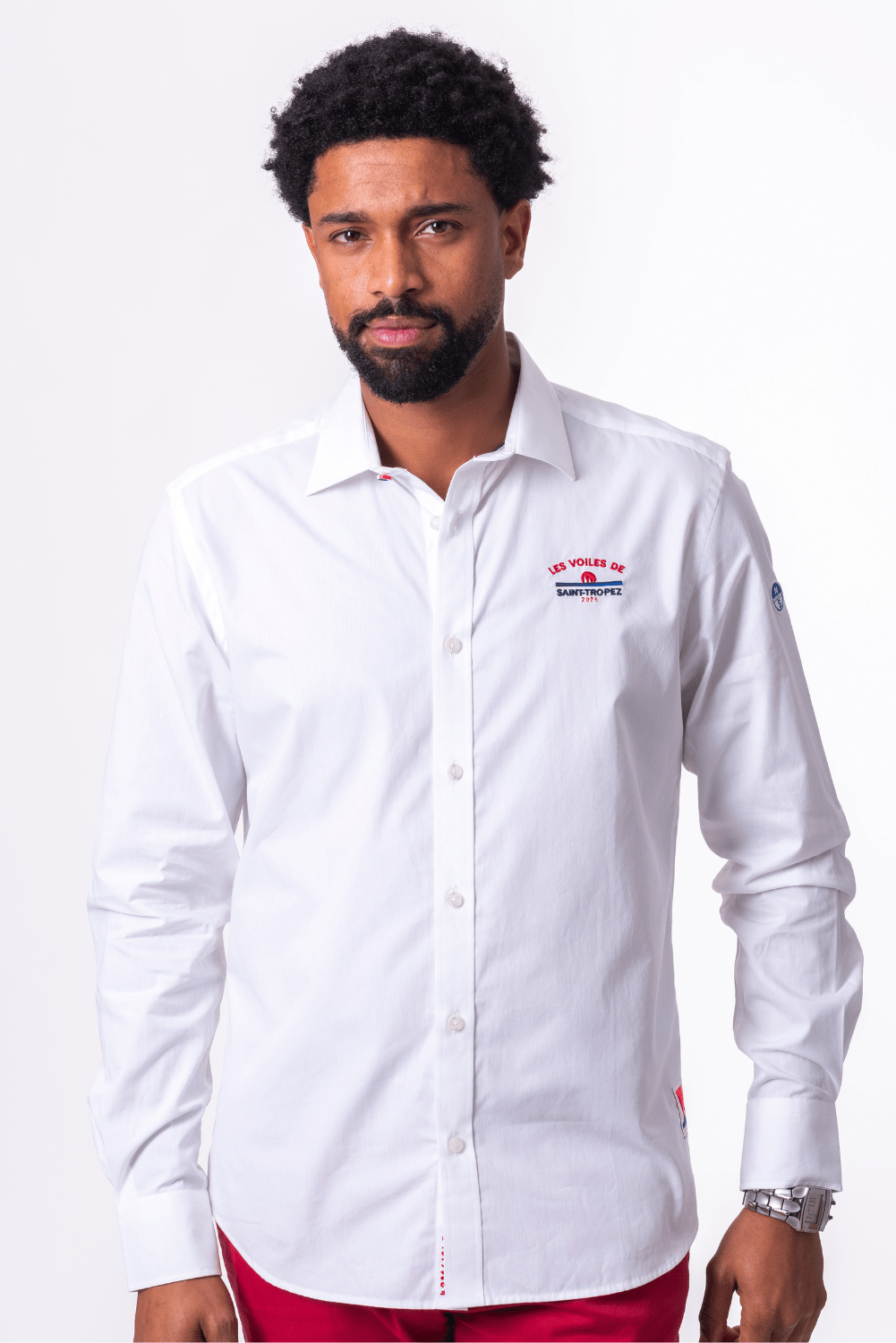 Cette chemise en popeline de coton pour homme rend hommage à la course à la voile la plus emblématique de la Côte d’Azur. Elle fait partie de la collection capsule exclusive Les Voiles de Saint-Tropez. Avec sa silhouette élégante, ce basique chic et décontracté se distingue par le logo LVDST brodé et les écussons cousus sur la poitrine.