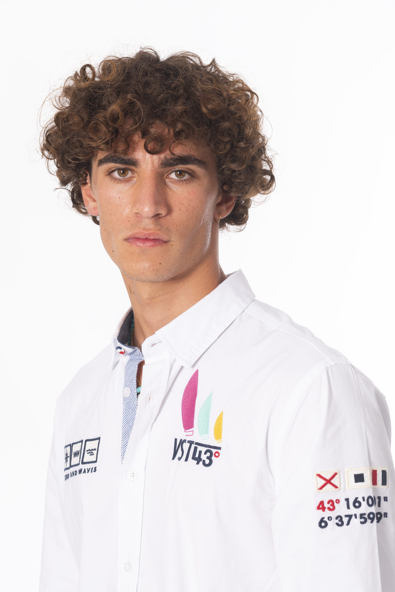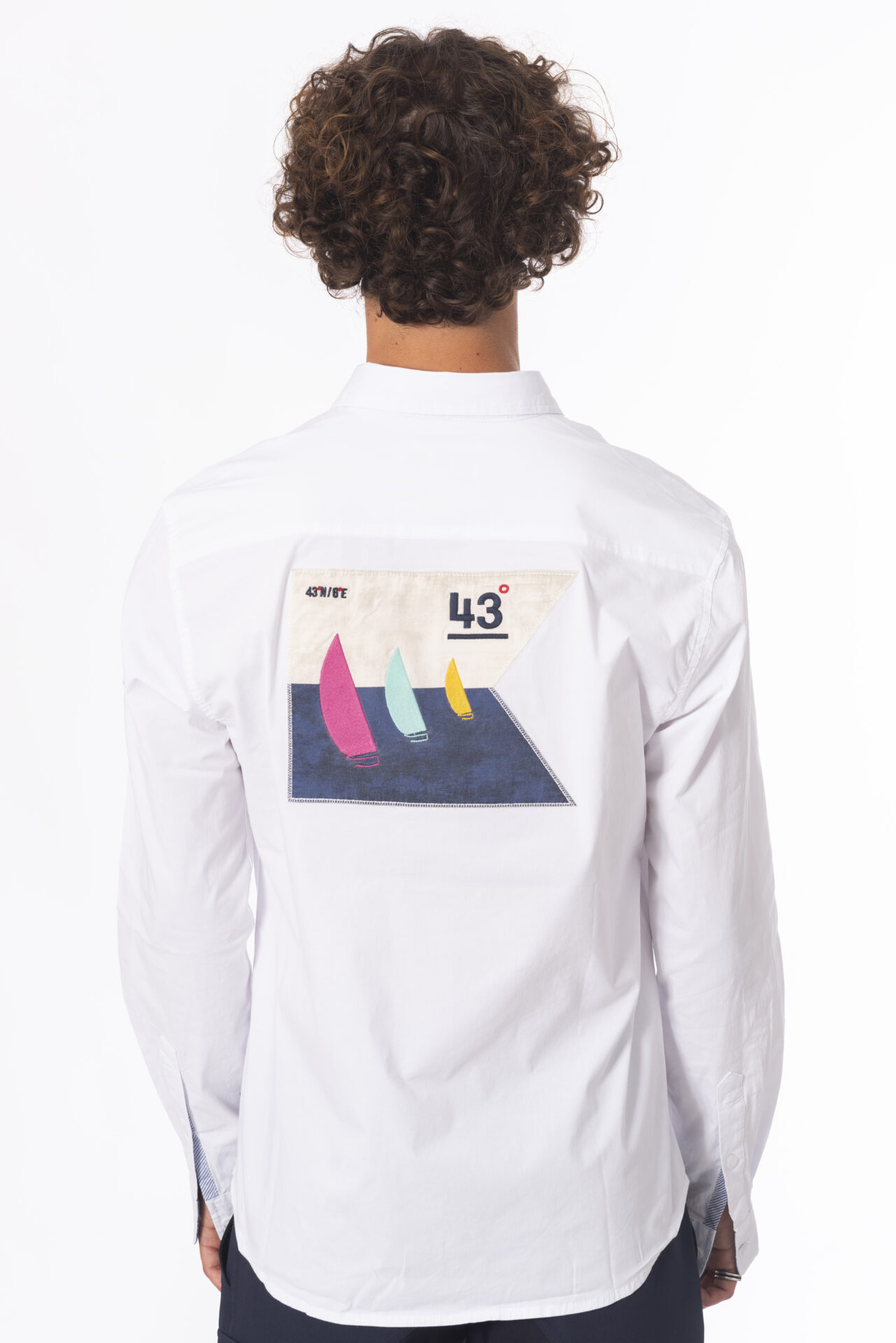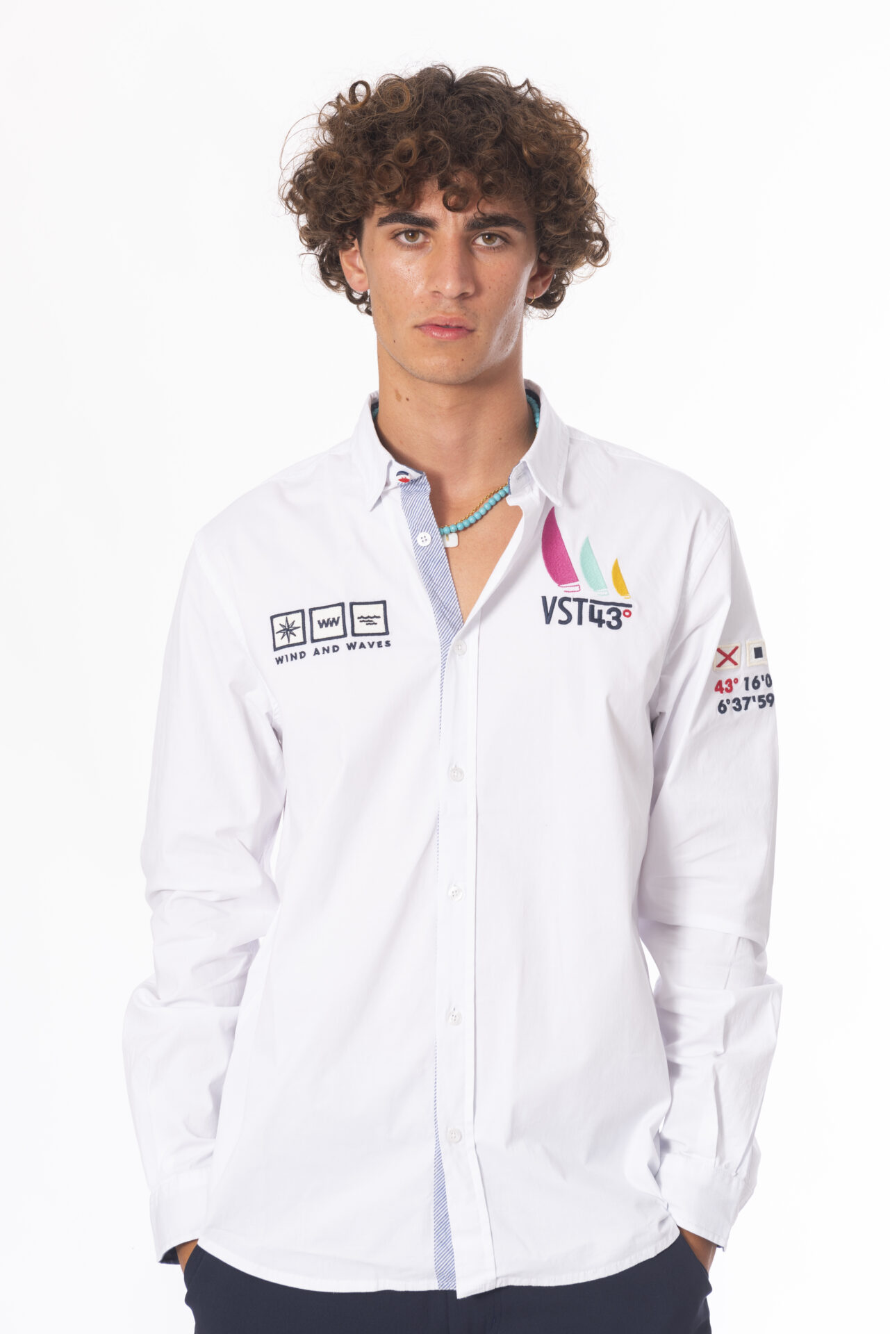 La chemise homme Cabris de la collection 2023 de VST43° offre un mariage parfait entre chic et classicisme. Les broderies de voiles et de « wind and waves » sur le devant, ainsi que la broderie sur la manche et l’application de voiles dans le dos, ajoutent une touche distinctive au style de la marque.