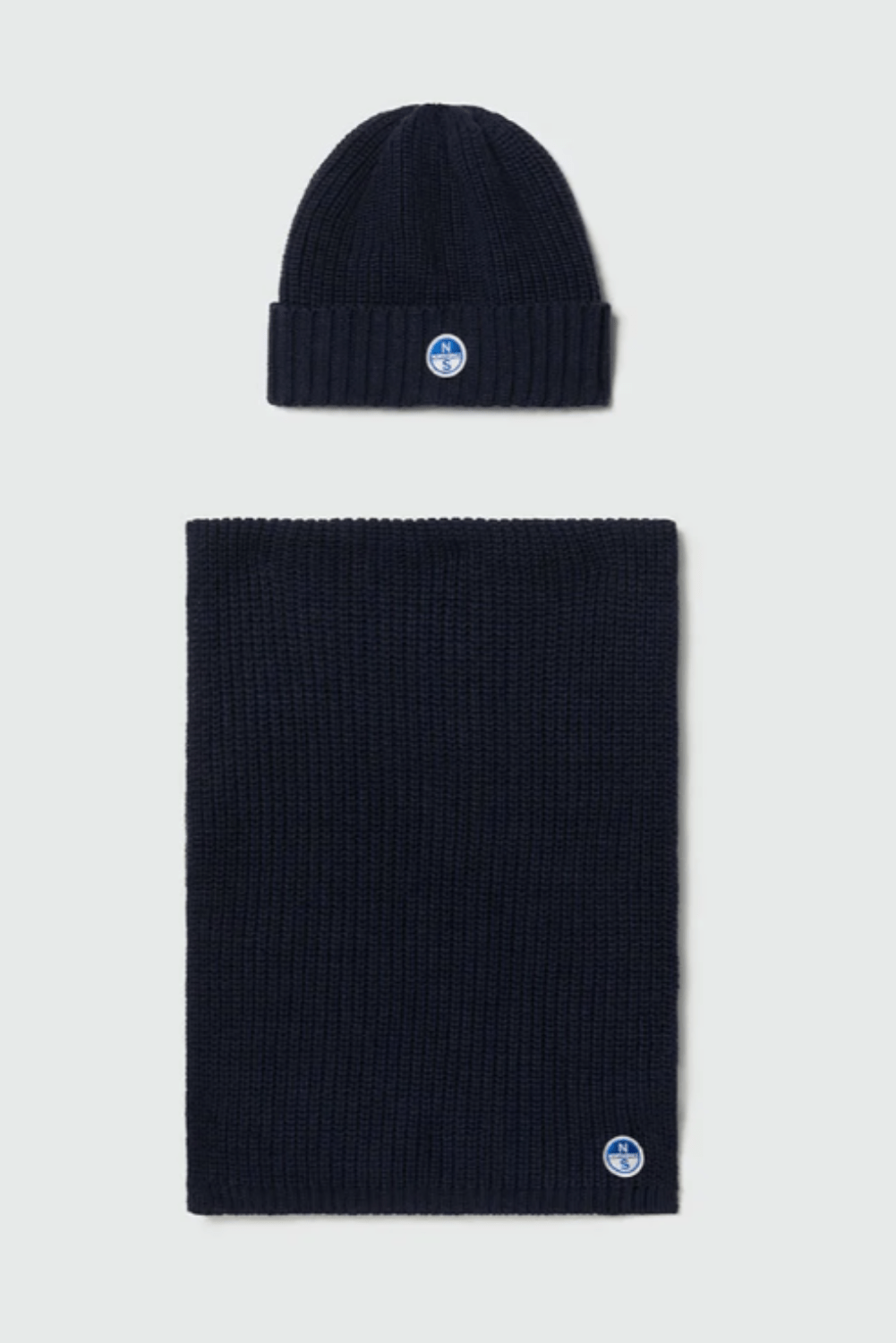 Restez au chaud et élégant avec le bonnet et l'écharpe NORTH SAILS Gift Box bleu marine.