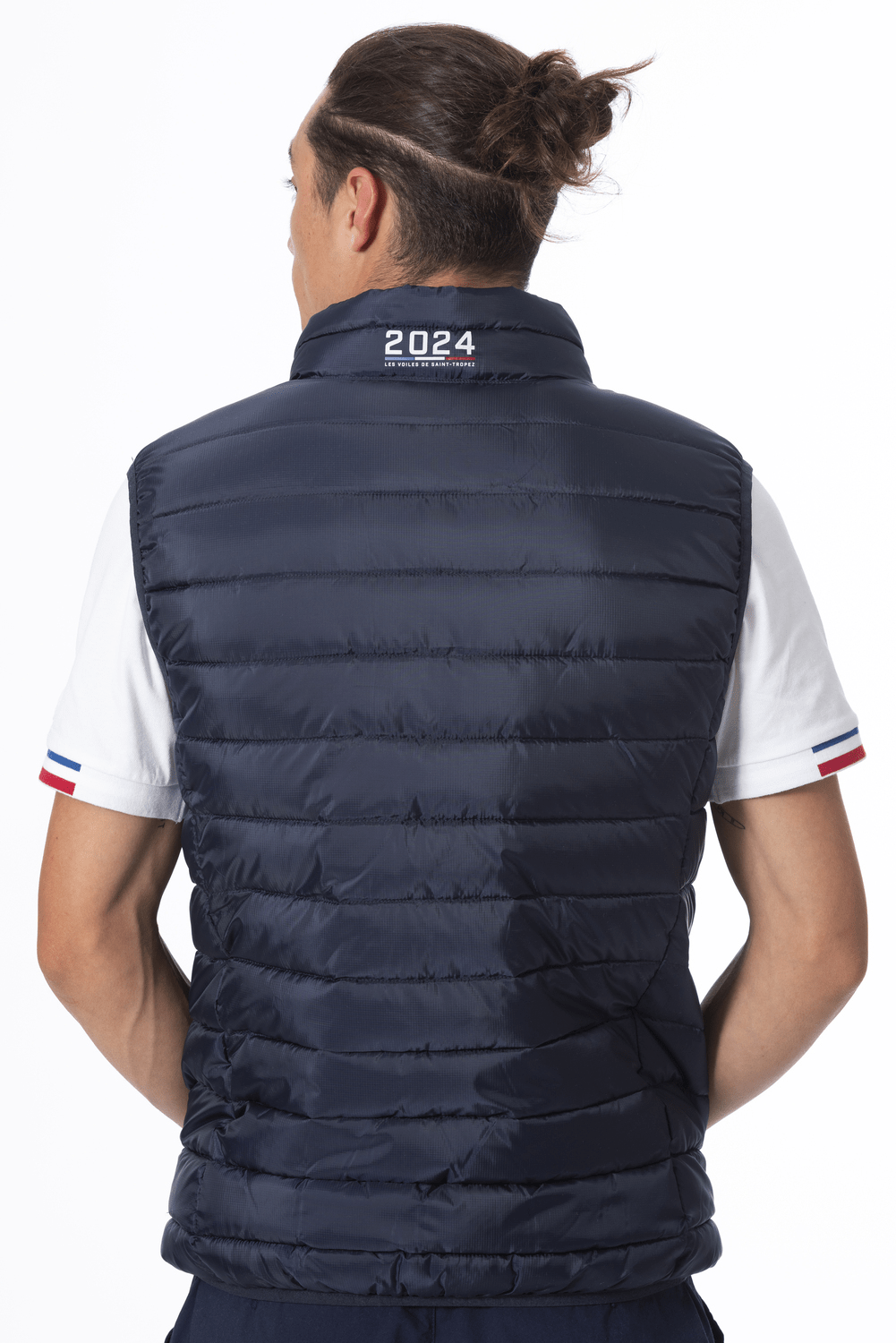 Veste sans manche pour homme en micro-ripstop recyclé de la collection Les Voiles de Saint-Tropez orné d’un écusson de la régate 2024