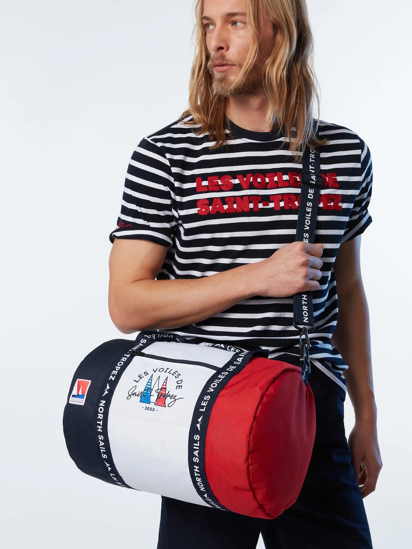 Ce sac de voyage pour hommes de la collection capsule Les Voiles de Saint-Tropez est fabriqué à partir de nylon recyclé. Le motif à rayures façon color block ajoute une touche de style à ce sac pratique et fonctionnel.