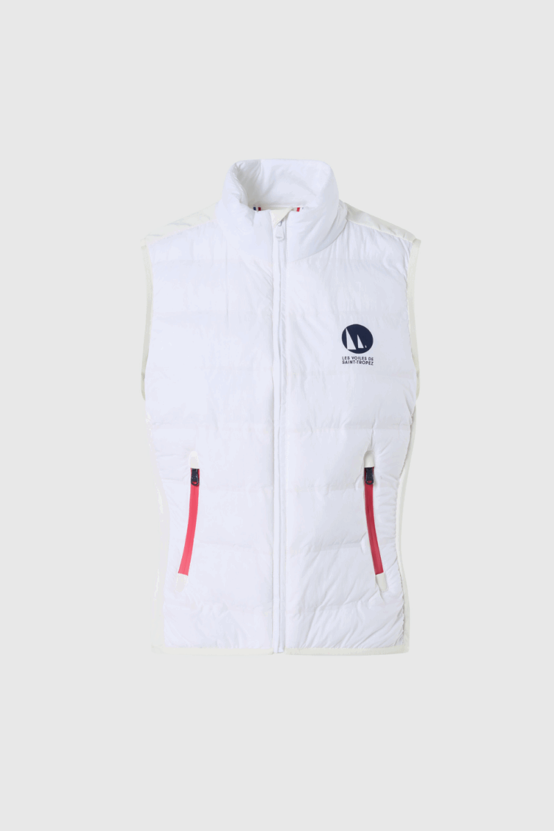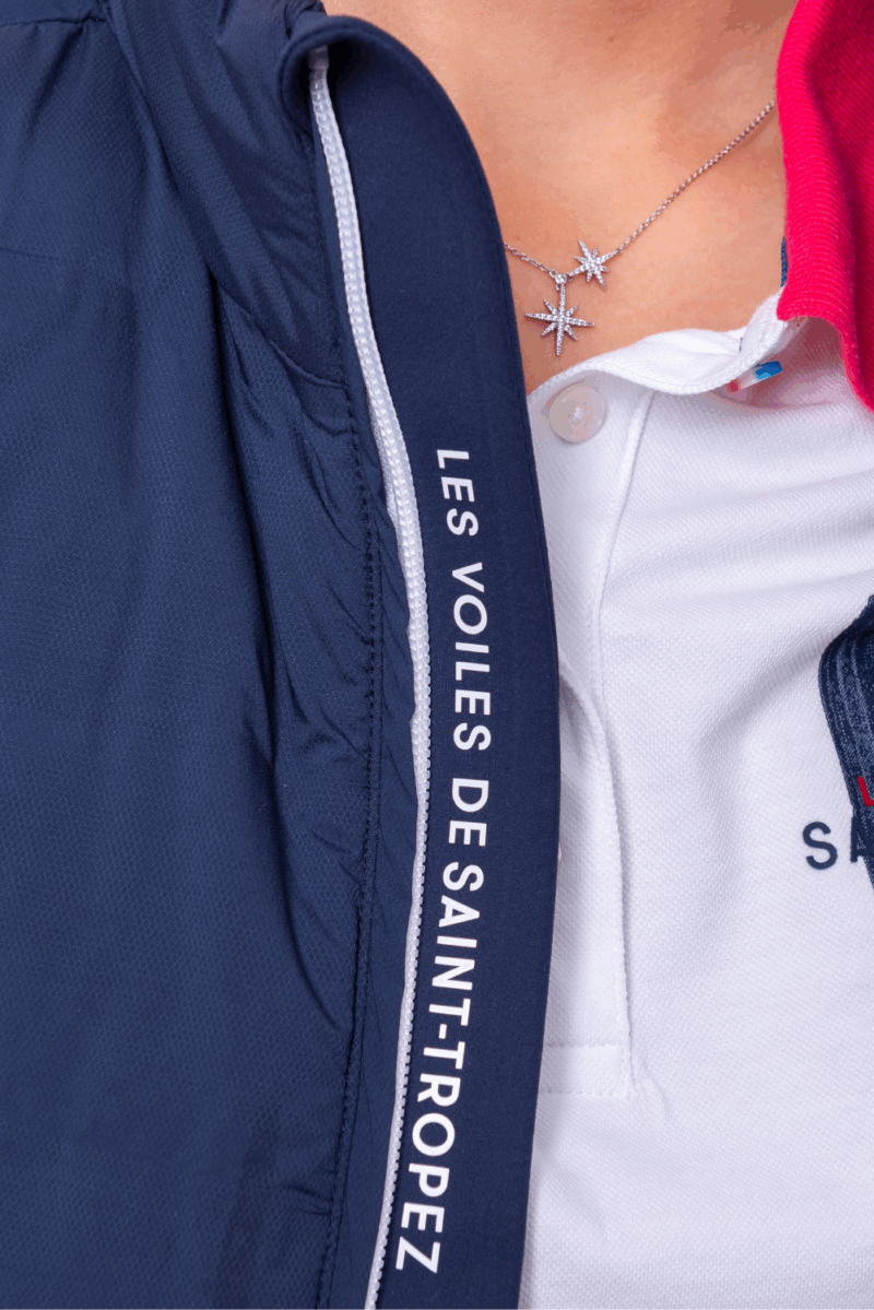 La veste idéale de mi-saison empreint du style élitiste des Voiles de Saint-Tropez. Ce gilet associe un tissu scuba doux sur les côtés et dans le dos à un tissu ripstop matelassé au laser sur le devant, pour donner vie à un modèle protecteur et léger, prêt pour l’aventure. Emprunté et inspiré des collections techniques de la marque. Orné du logo de la régate iconique sur la poitrine.