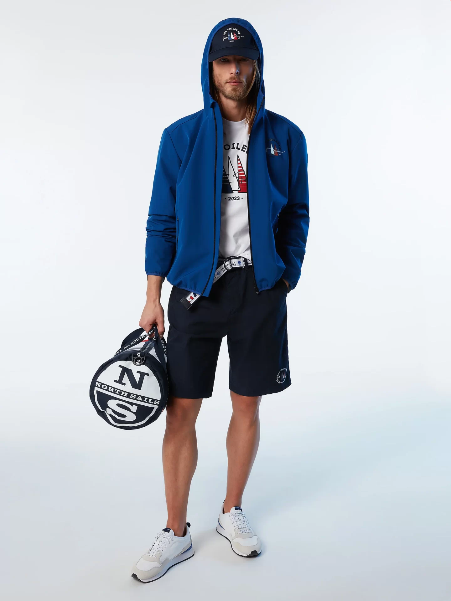 Ce coupe-vent issu de la collection capsule Les Voiles de Saint-Tropez est fabriqué à partir de softshell recyclé, bénéficiant ainsi d’un traitement déperlant.