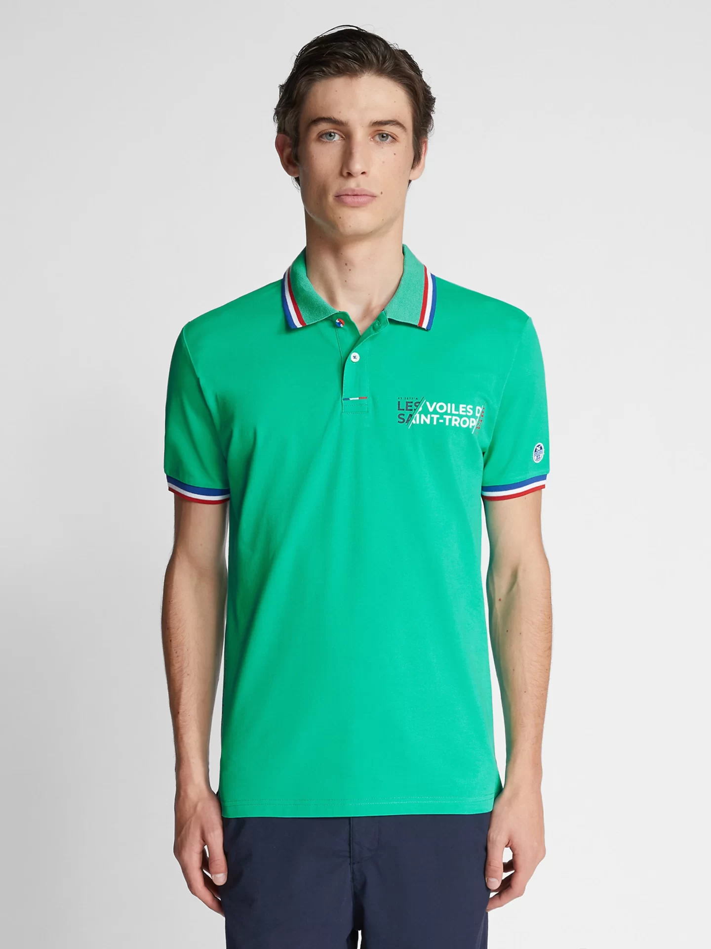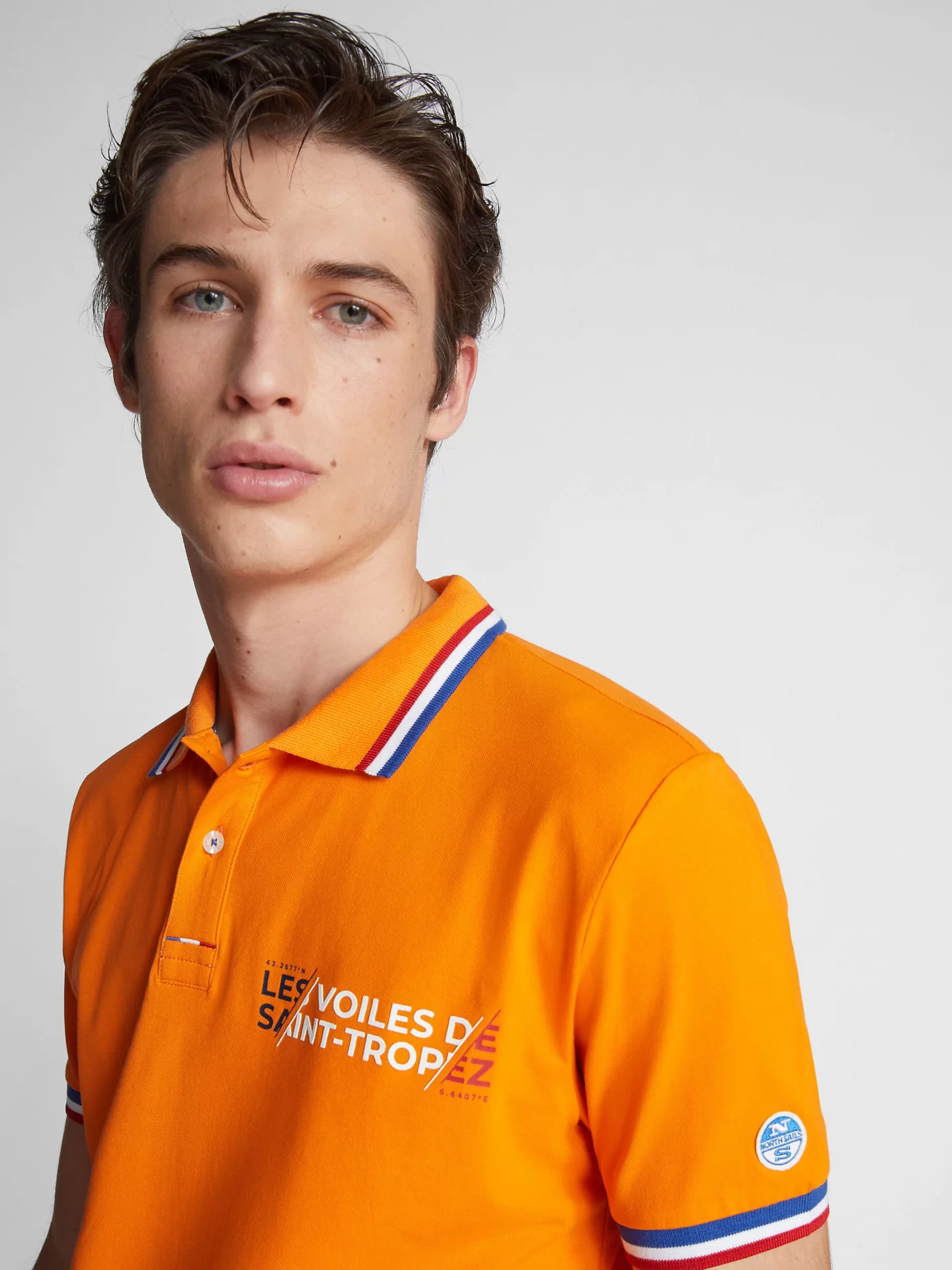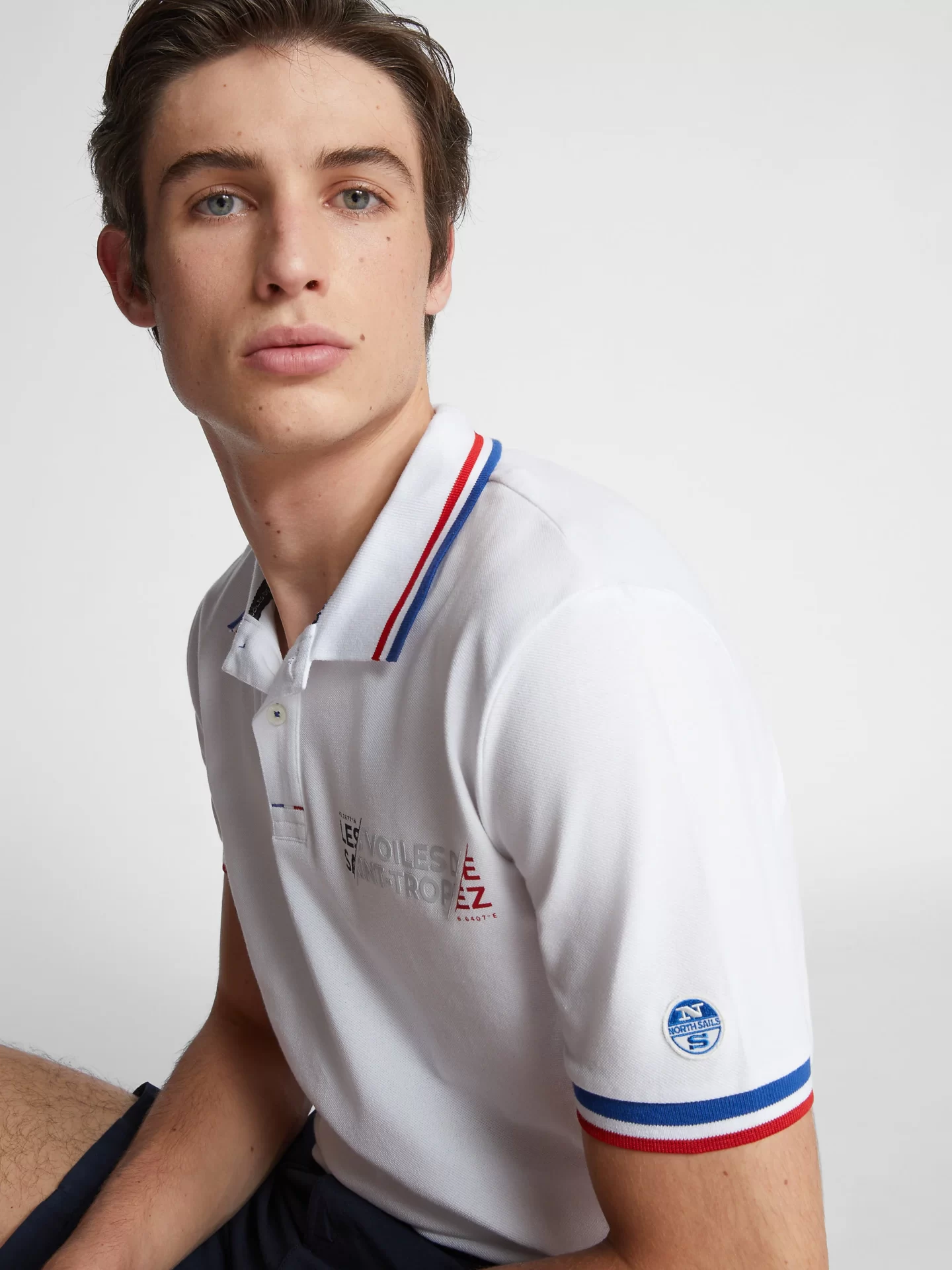 Classique estival et emblème de la collection Les Voiles de Saint-Tropez, ce polo, confectionné en piqué de coton biologique certifié, est caractérisé par des détails graphiques aux couleurs du drapeau français directement inspiré par la régate méditerranéenne.