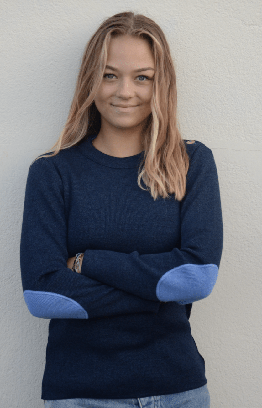 Pull marin Uni – 50 % laine / 50 % acrylique – Bleu Marine / Coude Roy Made In France Boutons en olivier Coupe droite