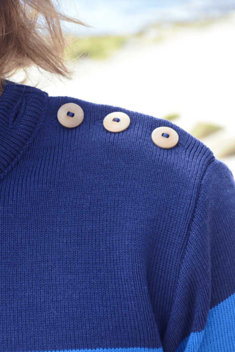 Véritable pull marin, enfilez le pour vous protéger du vent, du froid à la mer ou à la ville. La boutonnière avec ses boutons en Olivier ajoute une touche de modernité à ce pull classique. Un incontournable de la Bretagne !