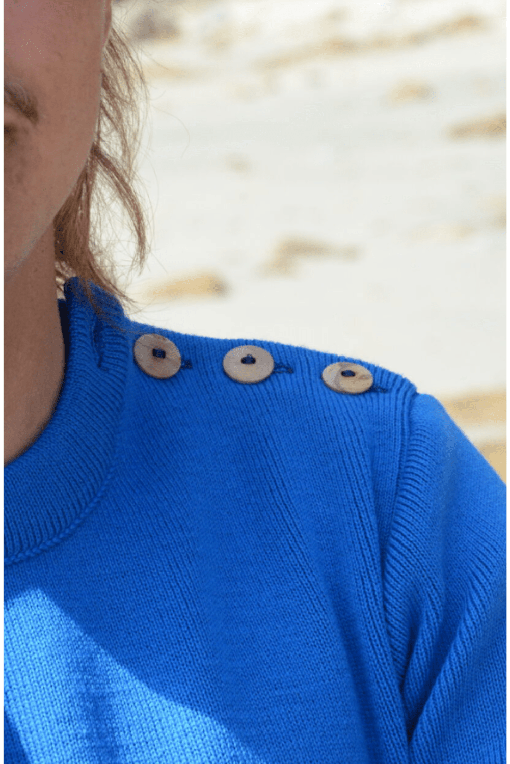Véritable pull marin, enfilez le pour vous protéger du vent, du froid à la mer ou à la ville. La boutonnière avec ses boutons en Olivier ajoute une touche de modernité à ce pull classique. Un incontournable de la Bretagne !