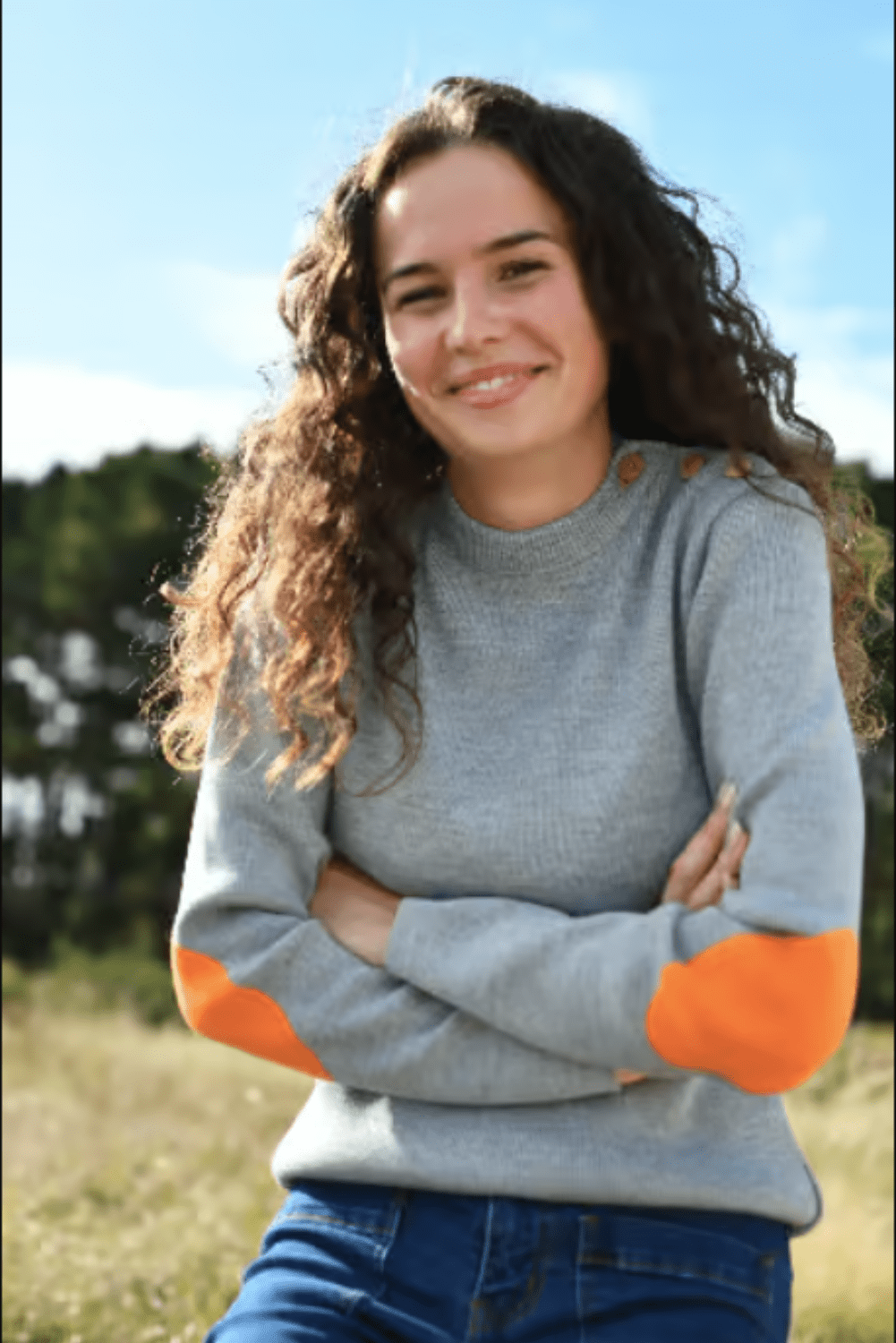 Le pull marin femme MEDELLIN associe l’élégance classique du vestiaire marin à une touche moderne et colorée. Sa teinte gris intemporel est sublimée par des coudes orange contrastés, pour un style dynamique et original.