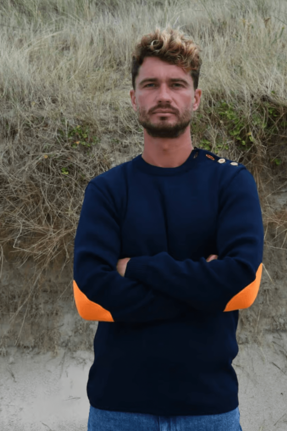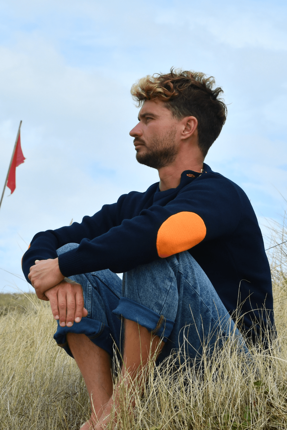 Le pull marin homme PERTH allie tradition et modernité avec son coloris bleu marine intemporel sublimé par des renforts aux coudes orange. Une pièce authentique et tendance qui met en valeur l’esprit marin revisité.