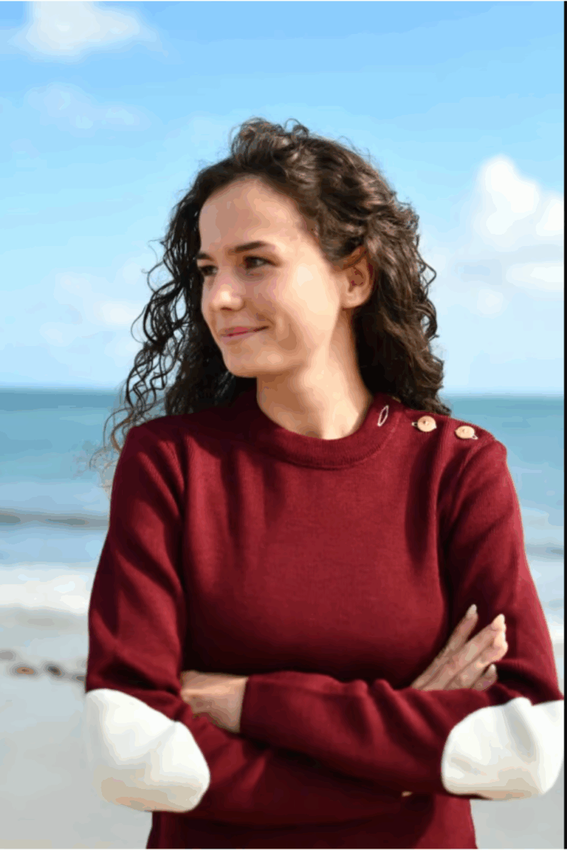 Le pull marin femme PETRA incarne l’élégance intemporelle du style marin revisité avec une touche moderne. Sa teinte bordeaux chaleureuse est sublimée par des coudes blancs contrastés, offrant un look raffiné et original.