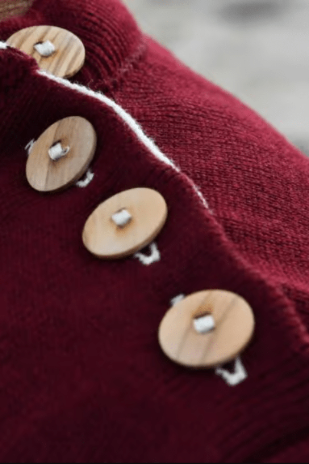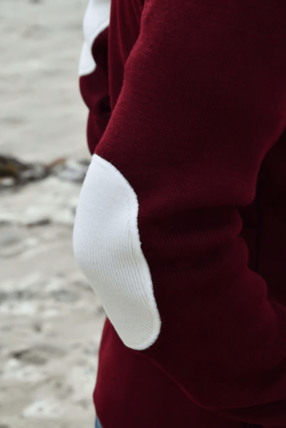 ✔ Couleur bordeaux avec coudes blancs pour un style distingué