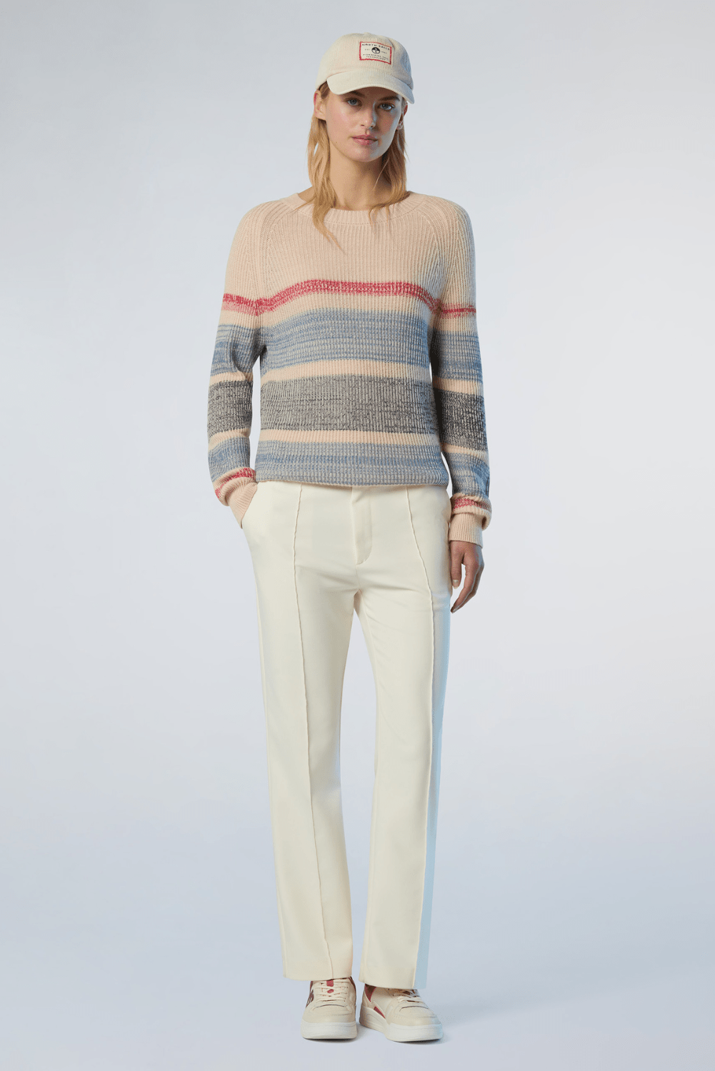 Confortable et douillet, avec une touche marine. Ce pull à col rond rend hommage à notre héritage marin avec son motif rayé. Il est tricoté dans un mélange d’alpaga doux pour une chaleur optimale lors des journées les plus froides. Ses manches raglan décontractées le rendent parfait pour les superpositions.