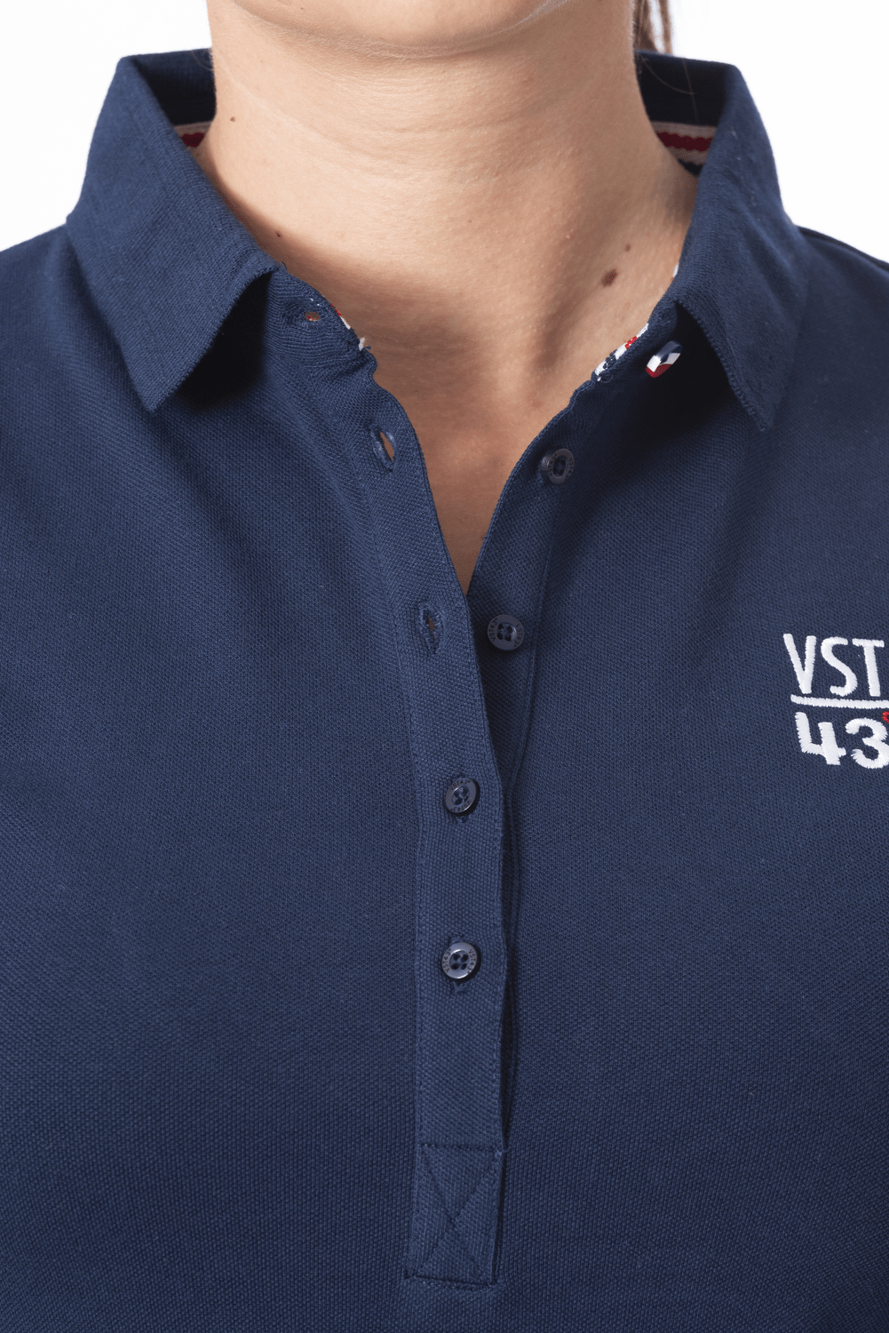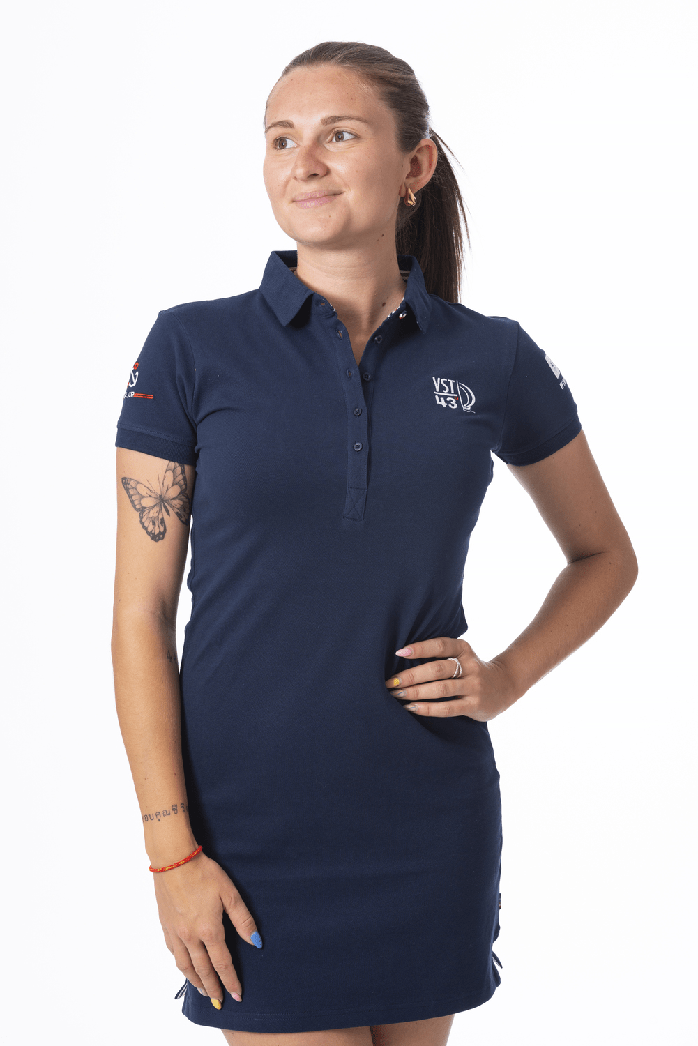 « La robe polo femme Cadran de VST43° : féminité, style sophistiqué et broderies raffinées.