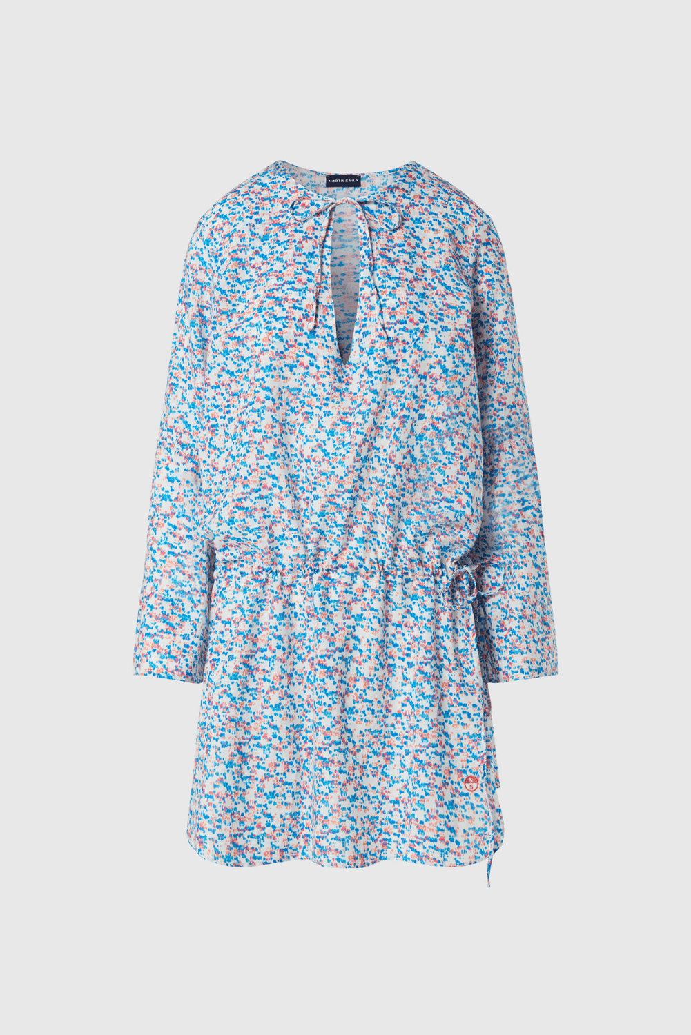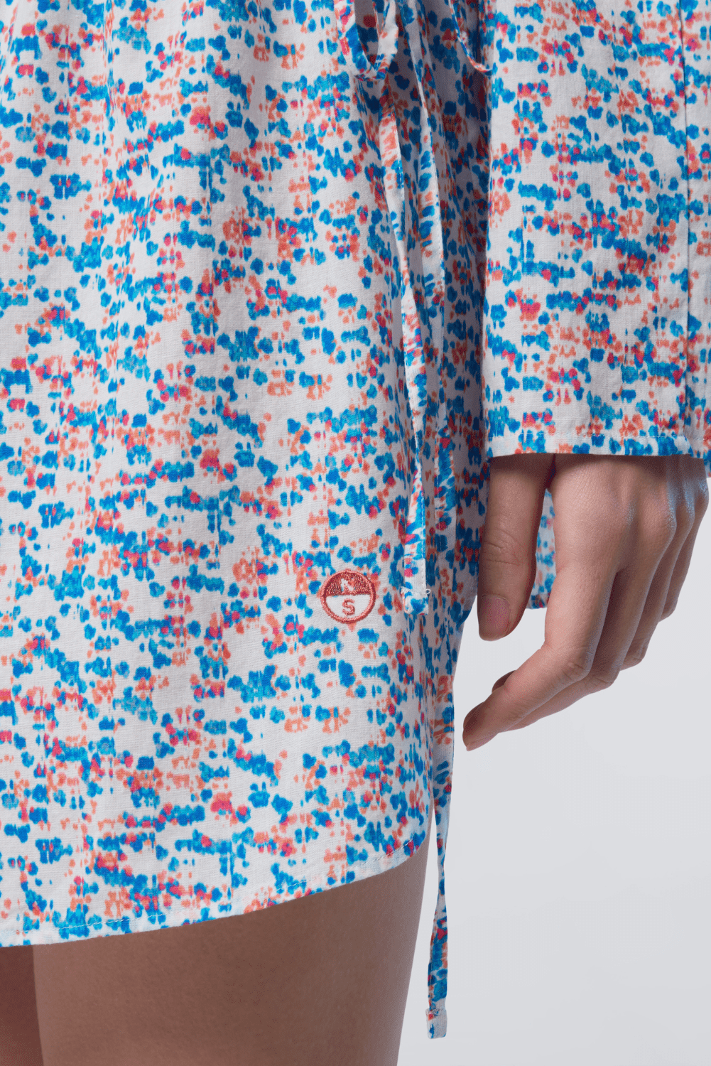Flânez de la plage à la maison, cette robe élégante fabriquée en mousseline de coton vaporeuse et ornée d'un imprimé bicolore fantaisie. Les manches évasées et l'ourlet arrondi vous couvriront suffisamment sans alourdir votre silhouette. Ce modèle est agrémenté de lanières délicates pour marquer élégamment votre taille.