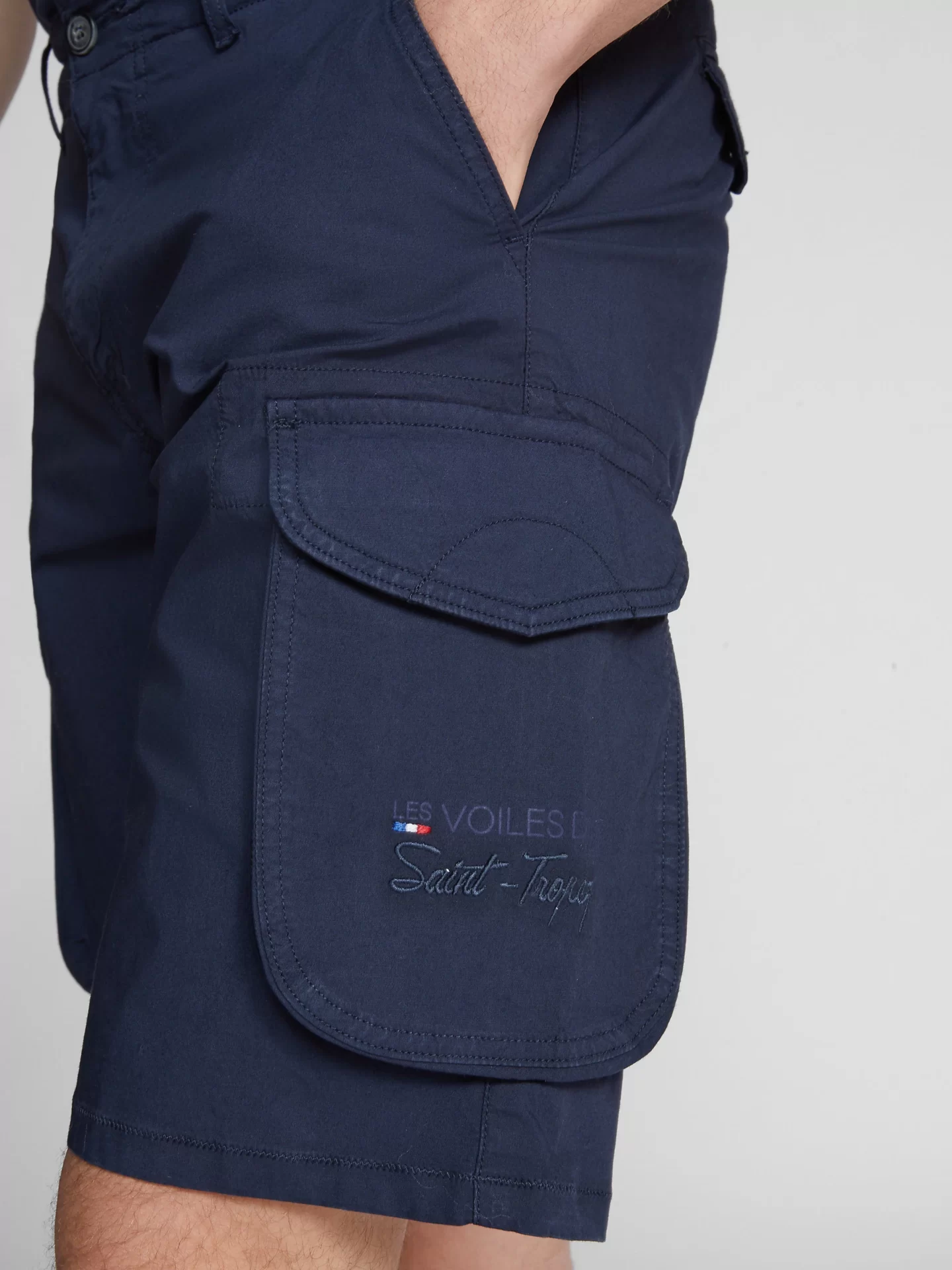 Pièce incontournable de la collection des Voiles de Saint-Tropez, ce short cargo en popeline de coton est agrémenté de de nombreuses poches pratiques et du logo emblématique de la régate à l’arrière.