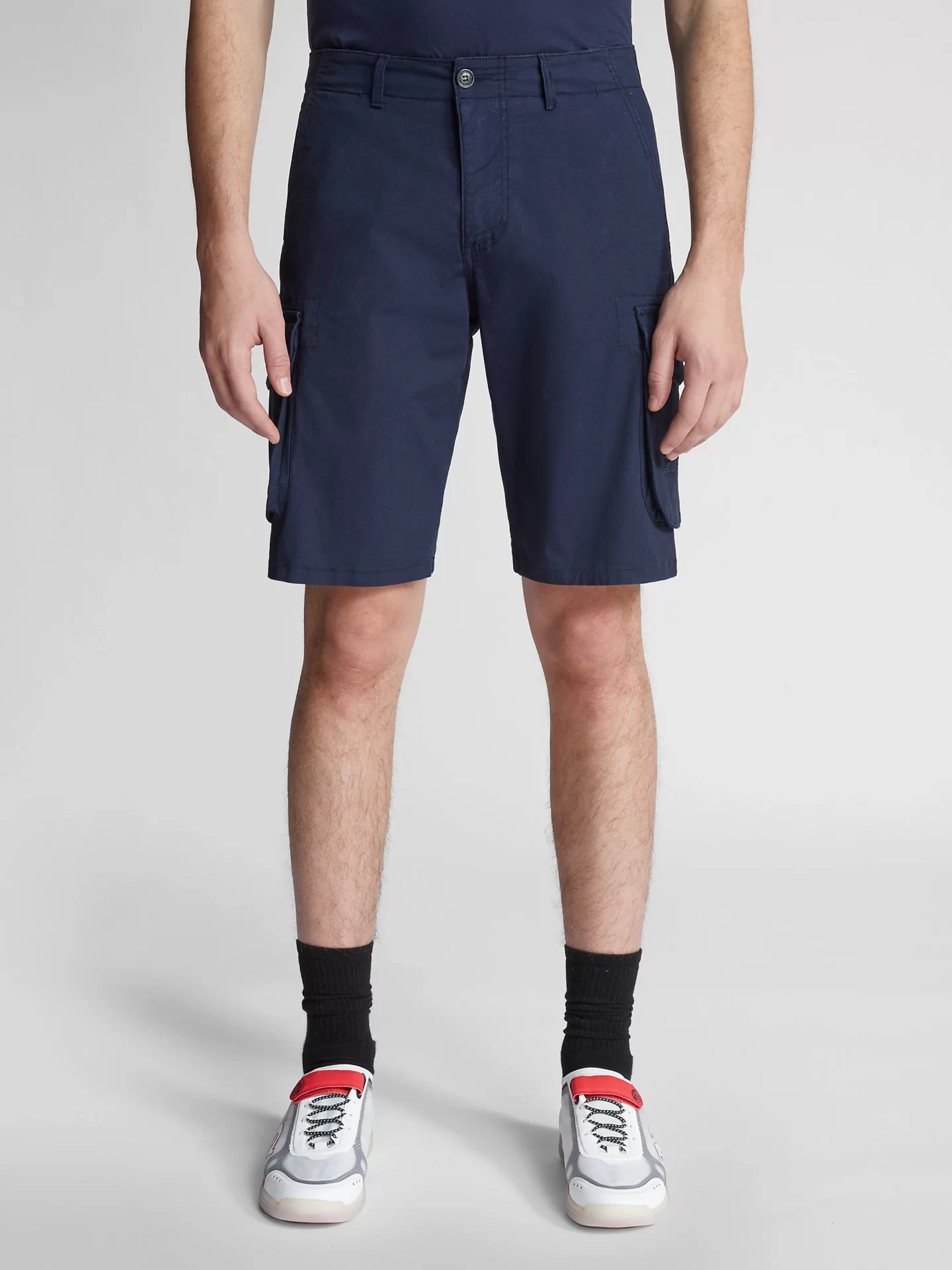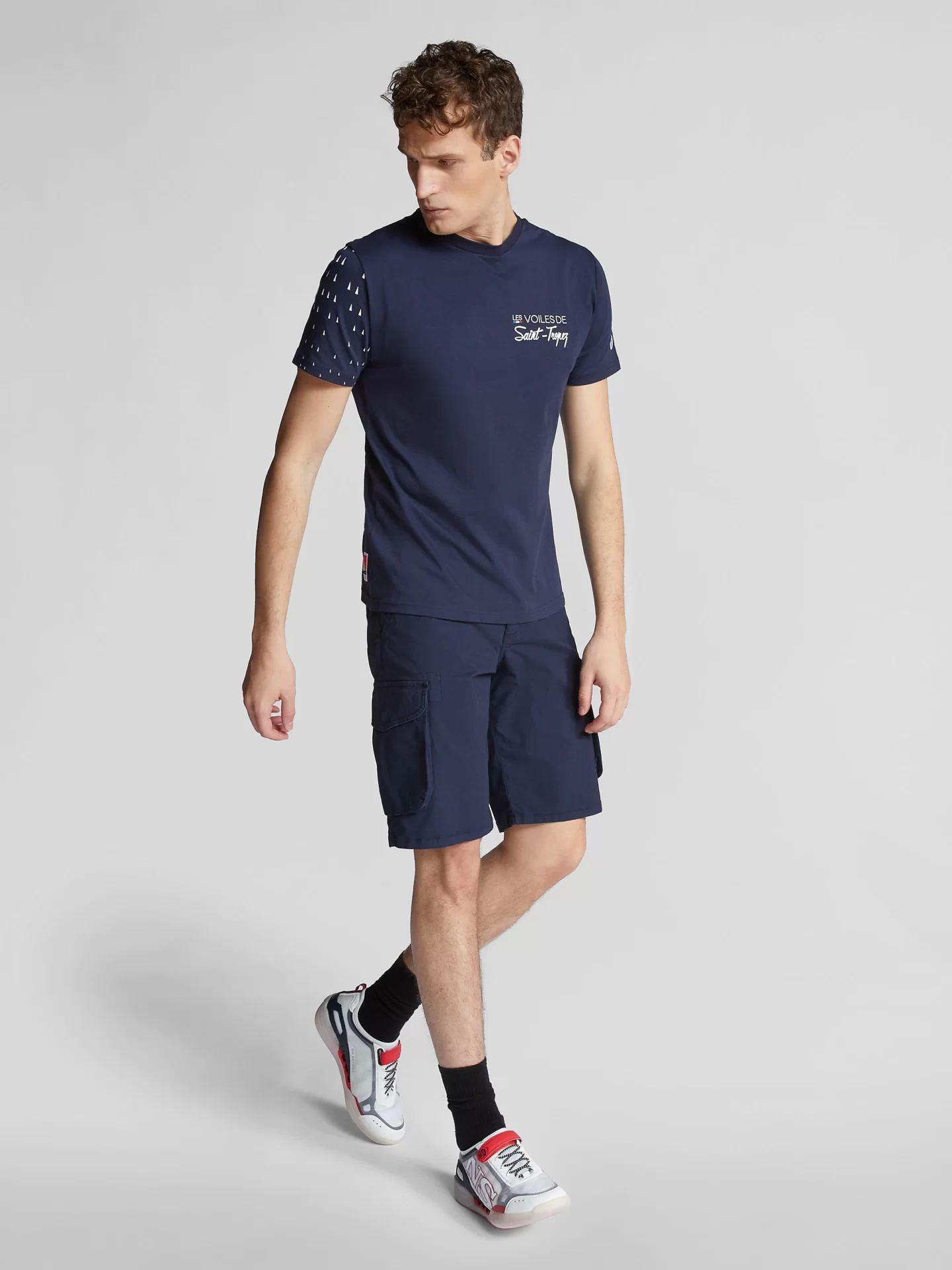 Aucune garde-robe décontractée ni aucun voyage ne seront tout à fait complets sans ce short cargo à la coupe standard. Ce modèle fait partie de la collection exclusive Les Voiles de Saint-Tropez, caractérisée par des détails graphiques aux couleurs du drapeau français. Fabriqué en popeline de coton biologique certifiée, avec un traitement de lavage à la pierre. Ce short présente des poches latérales, des poches passepoilées à l'arrière et des poches cargo typiques sur les côtés pour une fonctionnalité maximale. Il arbore également des passants de ceinture, une fermeture zippée et une fermeture à boutons dissimulés.
