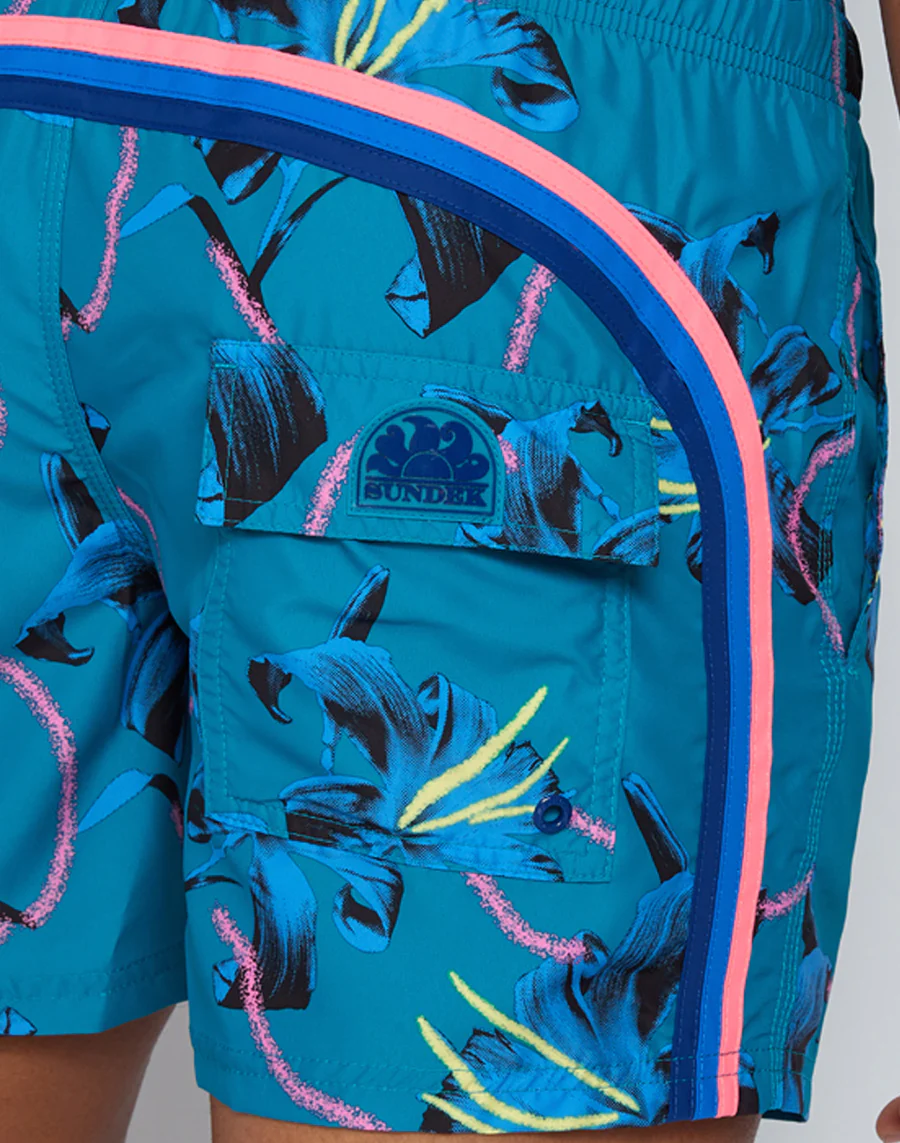 Ce maillot de bain est un indispensable de la plage grâce à son inspiration florale, son engagement écologique et l'emblématique arc-en-ciel de Sundek sur le dos. Conçu avec du tissu REPREVE® recyclé, fabriqué à partir de bouteilles en plastique réutilisées, ce maillot de bain est léger, robuste et sèche rapidement.
