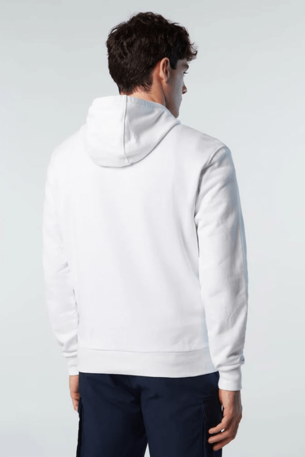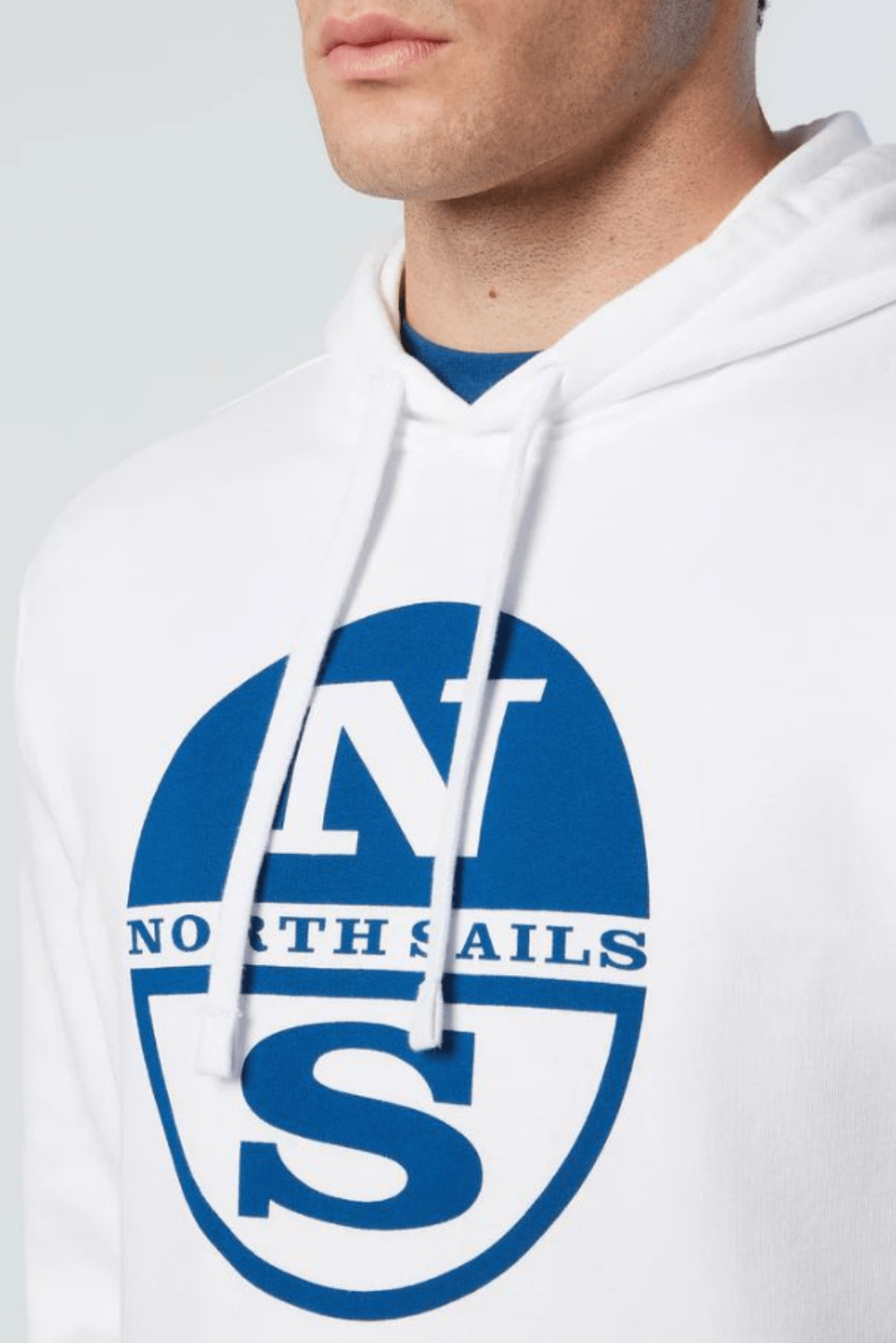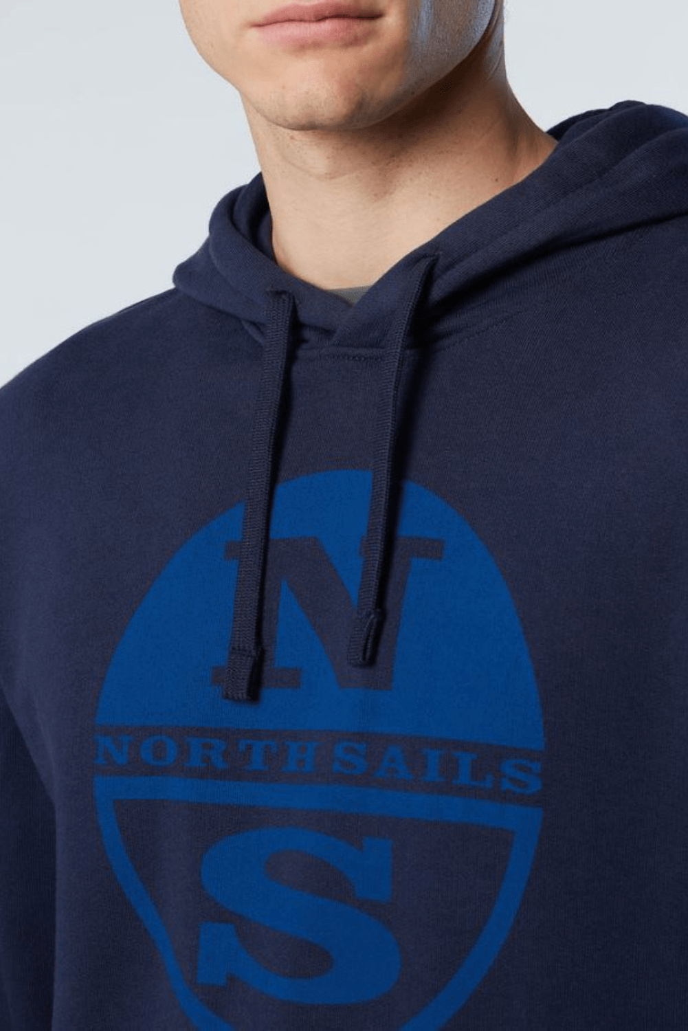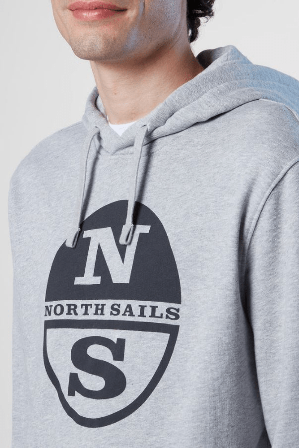 Sweat-shirt à capuche pour hommes, fabriqué à partir de coton biologique. Liserés côtelés et maxi logo North Sails imprimé sur la poitrine.