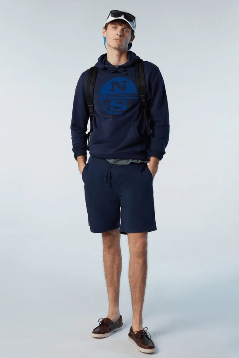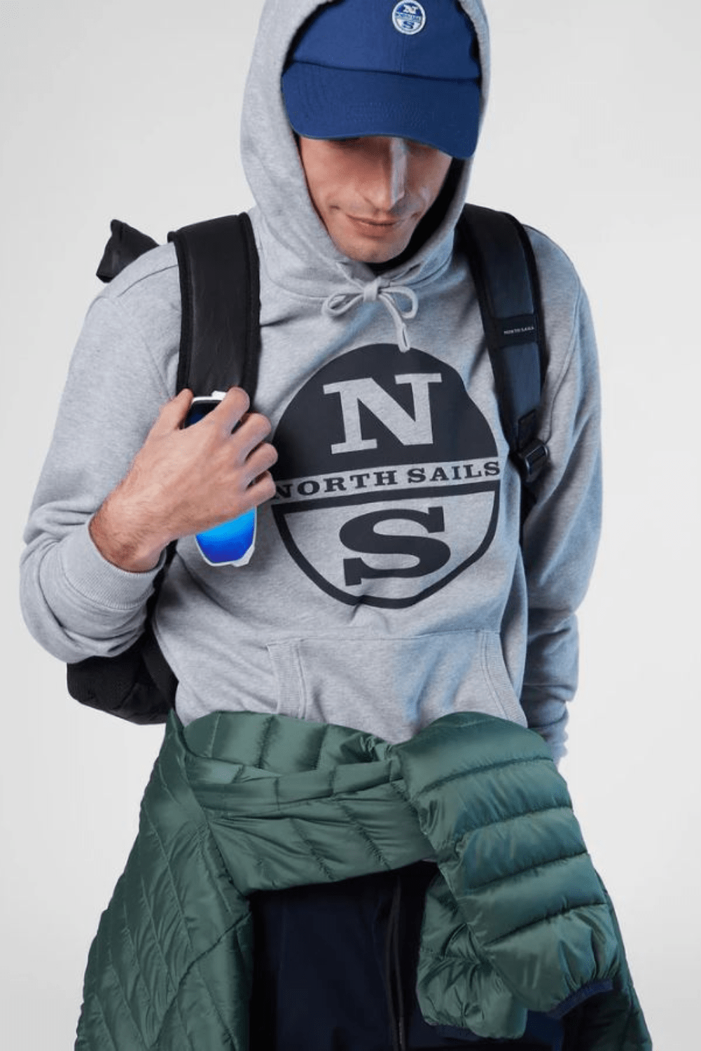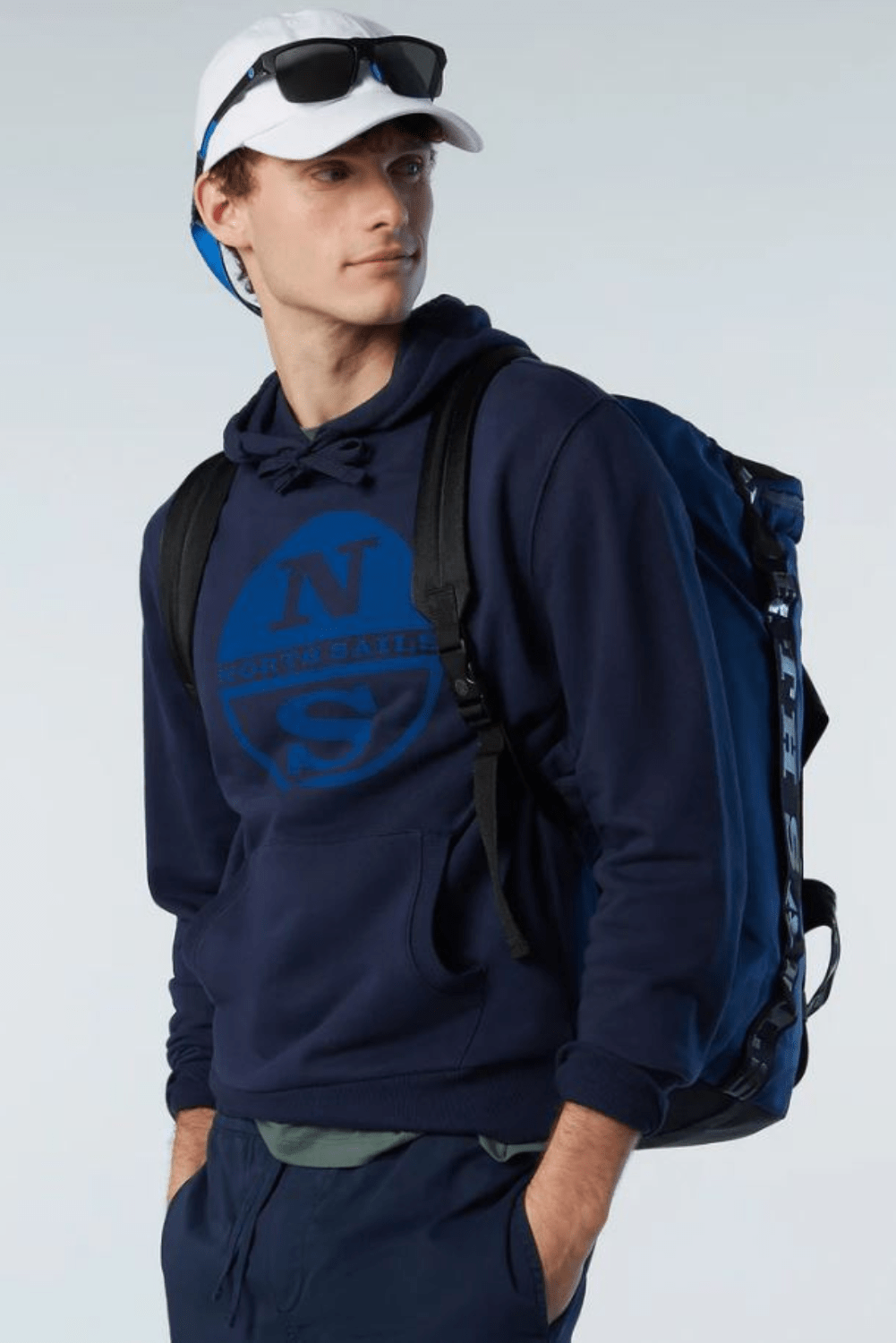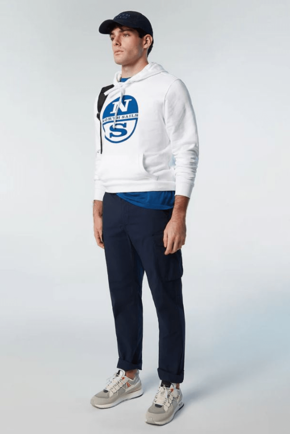 Sweat-shirt à capuche pour hommes, fabriqué à partir de coton biologique. Liserés côtelés et maxi logo North Sails imprimé sur la poitrine.
