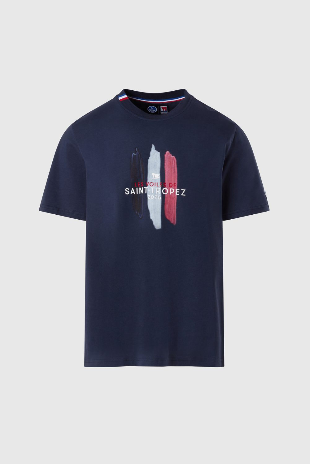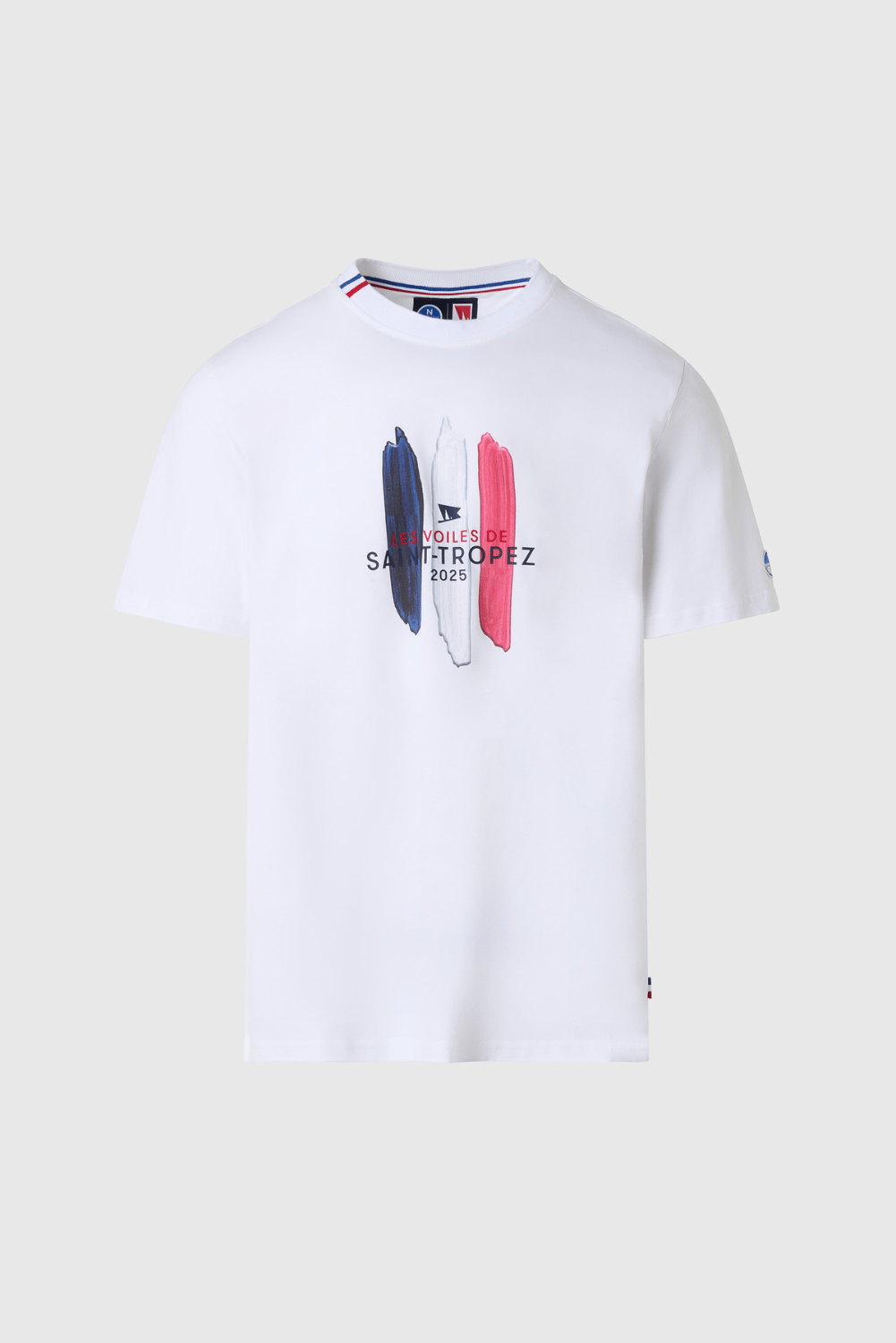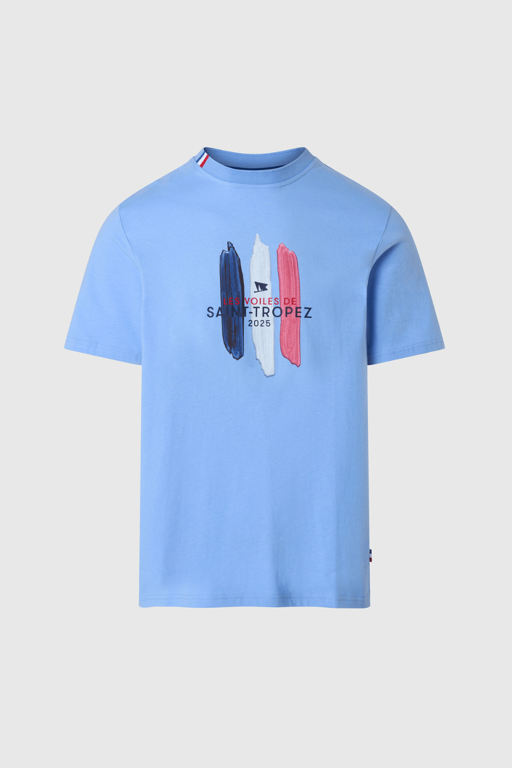 Plongez dans l’esprit audacieux des régates avec ce T-shirt exceptionnel qui célèbre la beauté des Voiles de Saint-Tropez. Conçu pour les amoureux de la mer et du style, il arbore un imprimé distinctif sur le devant : un drapeau français stylisé avec un effet « paint brush » qui évoque à la fois modernité et tradition.