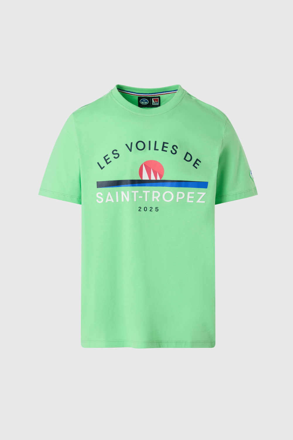 Faites une déclaration à la fois de style et de durabilité avec ce T-shirt qui allie confort, qualité et respect de l’environnement. Que vous soyez marin aguerri ou simple amateur de voile, ce T-shirt sera le parfait compagnon pour vivre chaque instant avec passion lors des Voiles de Saint-Tropez !