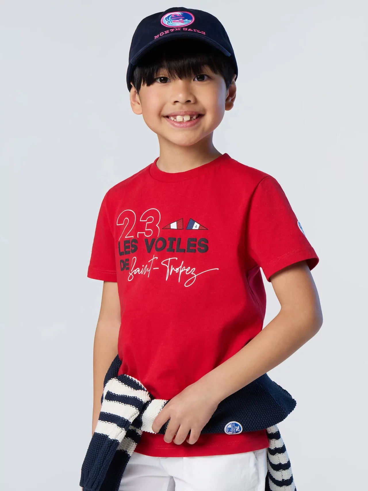 Ce t-shirt pour enfants de la collection capsule Les Voiles de Saint-Tropez est confectionné en jersey de coton biologique. Il présente des détails graphiques qui rendent hommage à l’édition 2023 de la régate méditerranéenne. Avec son col ras-du-cou côtelé et ses manches courtes, ce t-shirt offre confort et style. Le logo Les Voiles de Saint-Tropez et l’écusson North Sails ajoutent une touche d’authenticité à cette pièce. Optez pour ce t-shirt tendance et éthique pour habiller votre enfant !