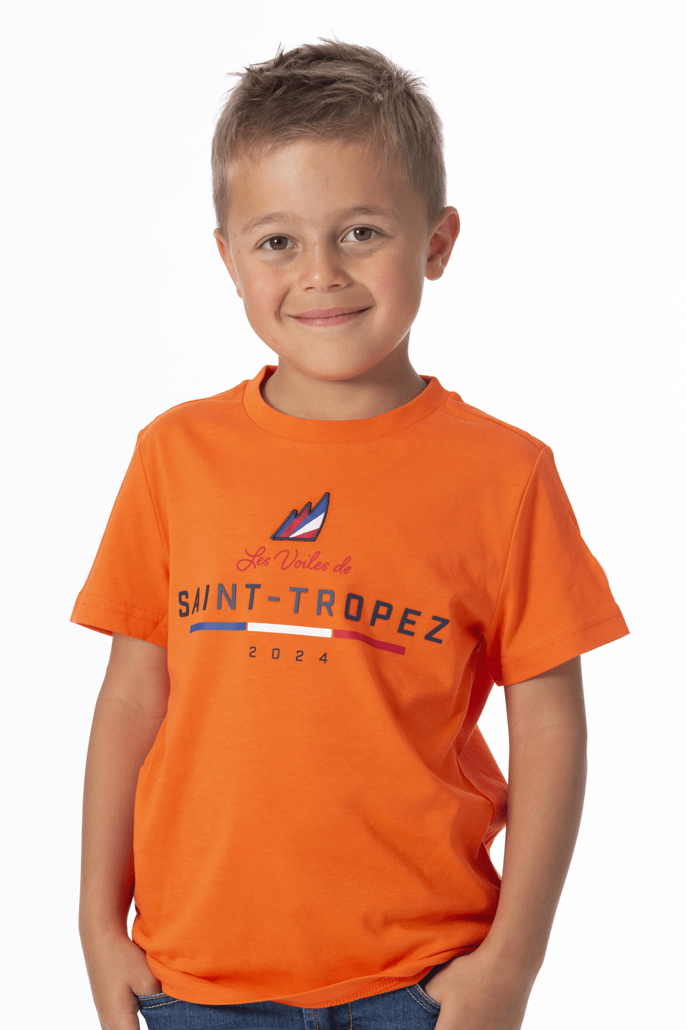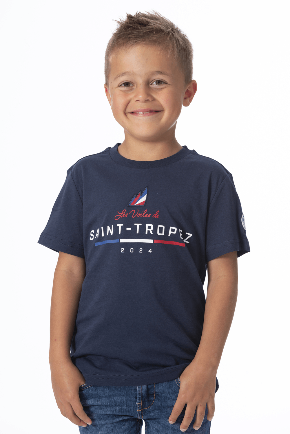 Le T-shirt Signature pour enfant est conçu en jersey de coton biologique. Issue de la collection Les Voiles de Saint-Tropez, broderie sur le devant, habillé comme Papa, un vrai matelot. Disponible en 5 couleurs.