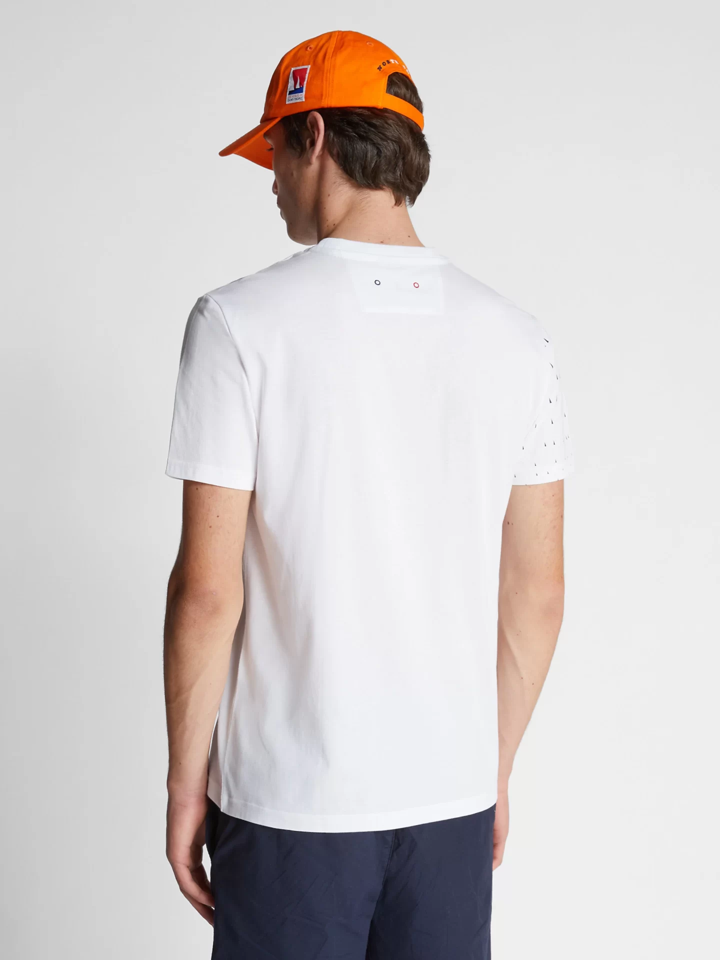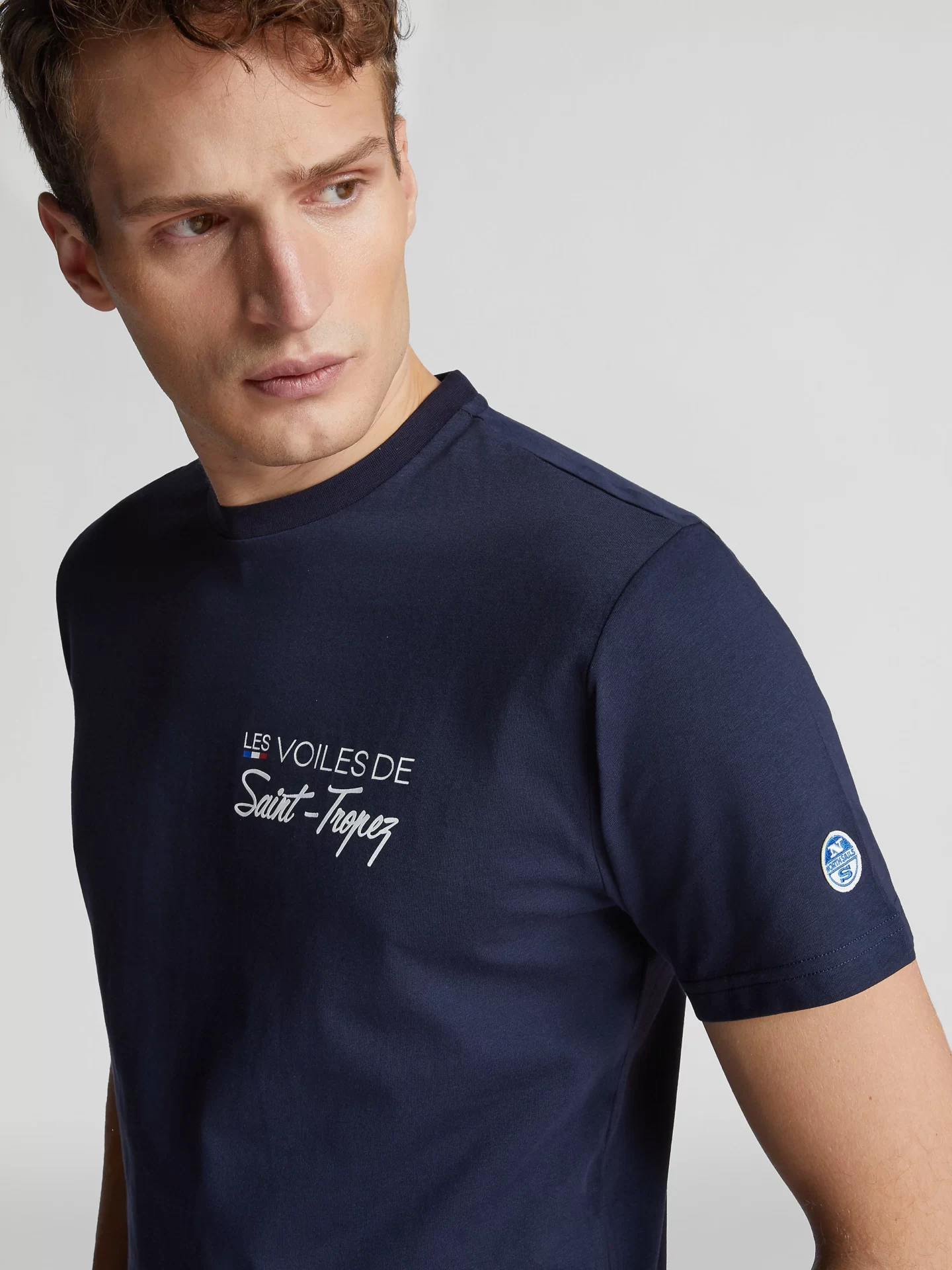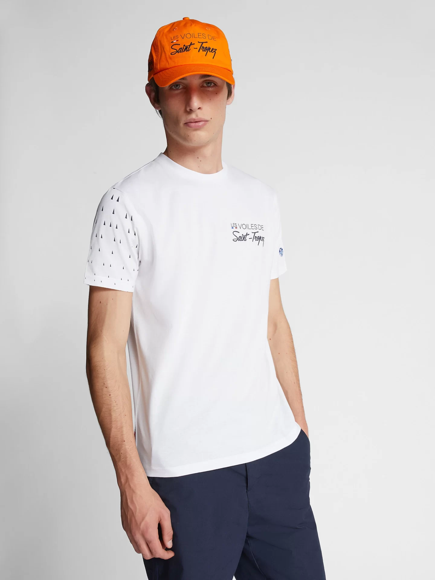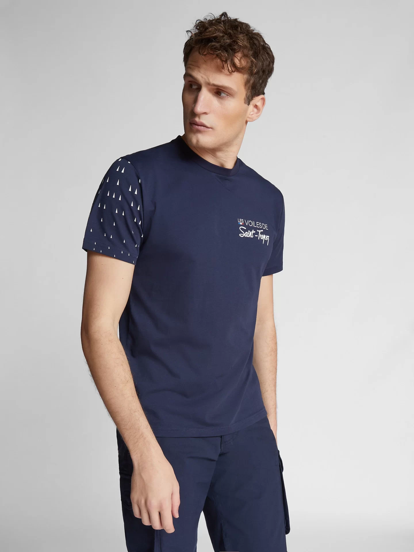 Ce t-shirt en coton biologique issu de la collection Les Voiles de Saint-Tropez, est agrémenté de l’imprimé graphique caractéristique de l’édition 2022 de cette régate méditerranéenne.