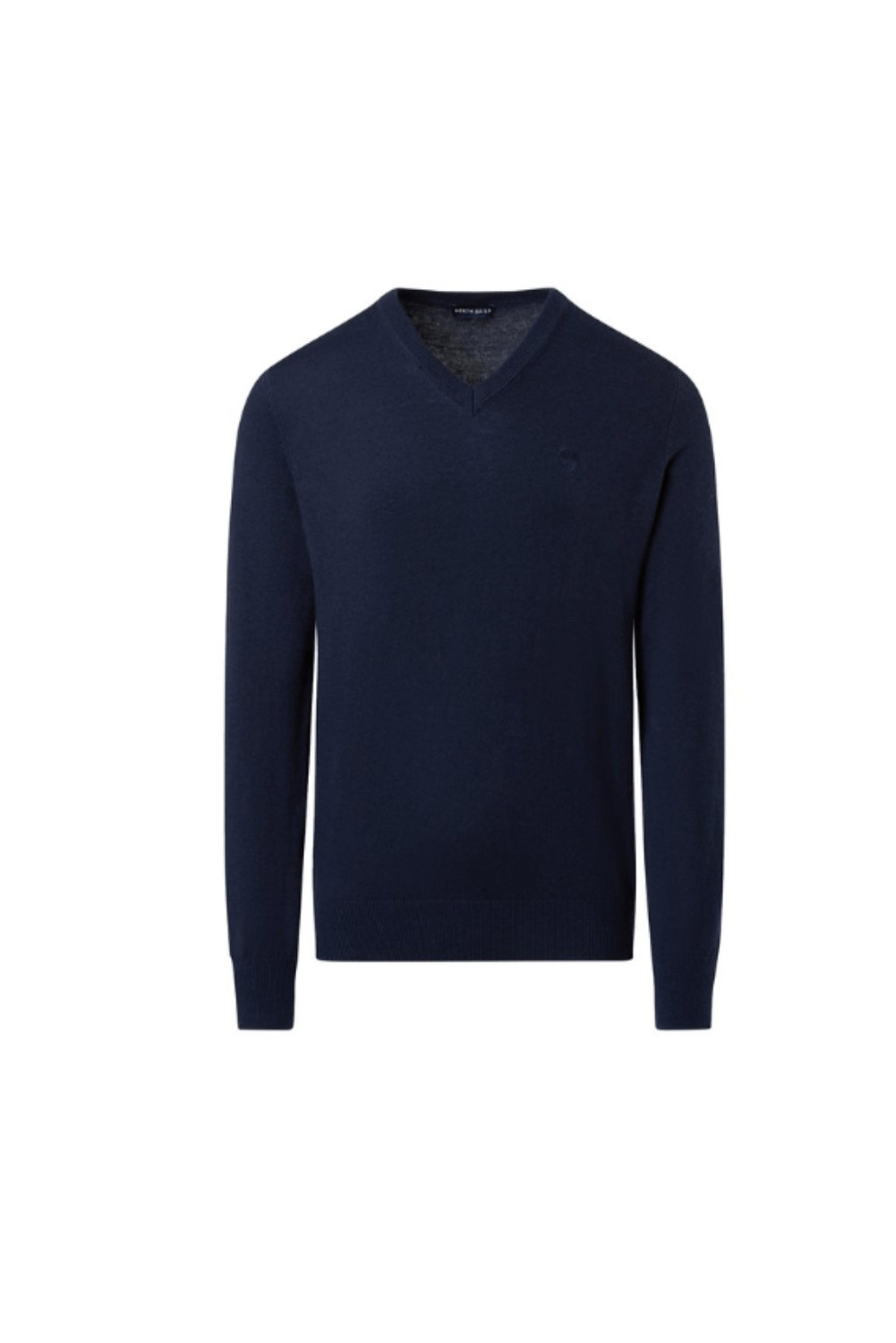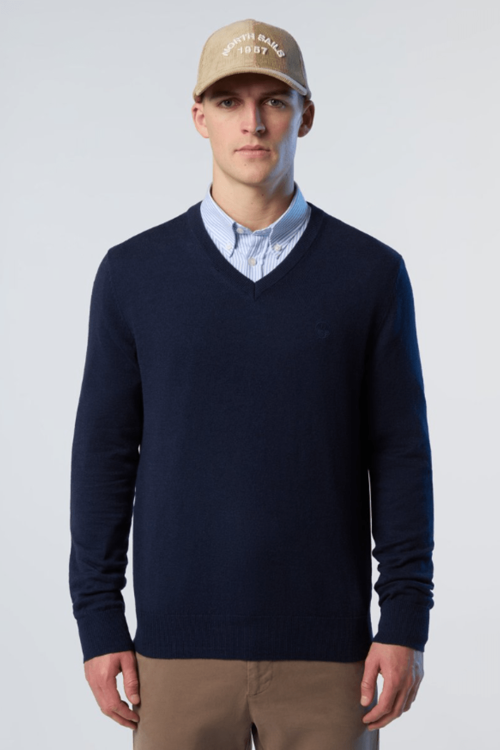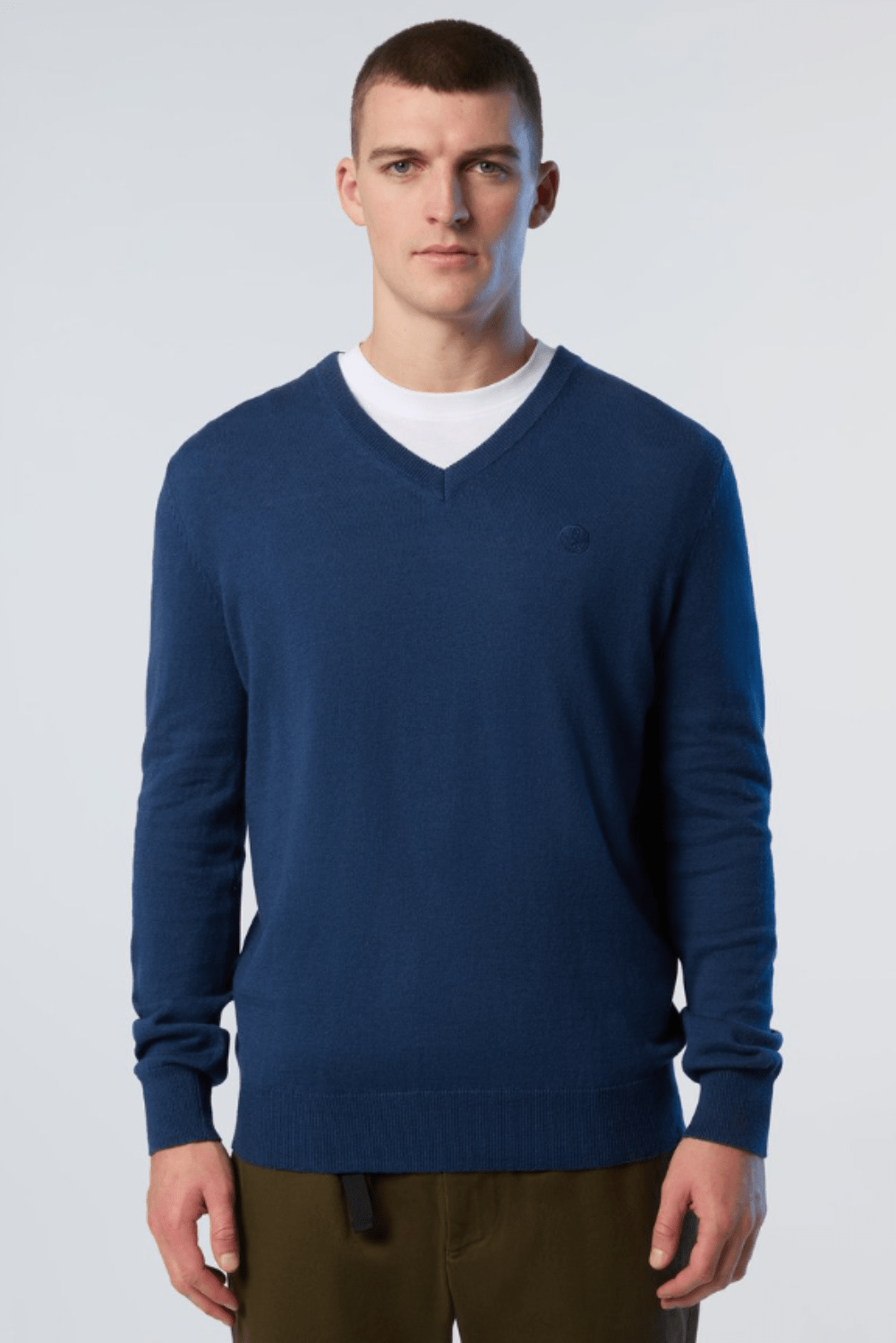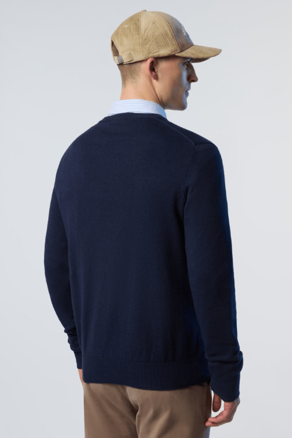 Un essentiel et un classique dans votre armoire. Ce pull à col en V raffiné est tricoté dans un doux mélange de laine et de coton biologique. Un logo classique est brodé ton sur ton sur la poitrine pour afficher un look sobre empreint du style signature North Sails. Parfait sur une chemise, un tee-shirt ou un polo.