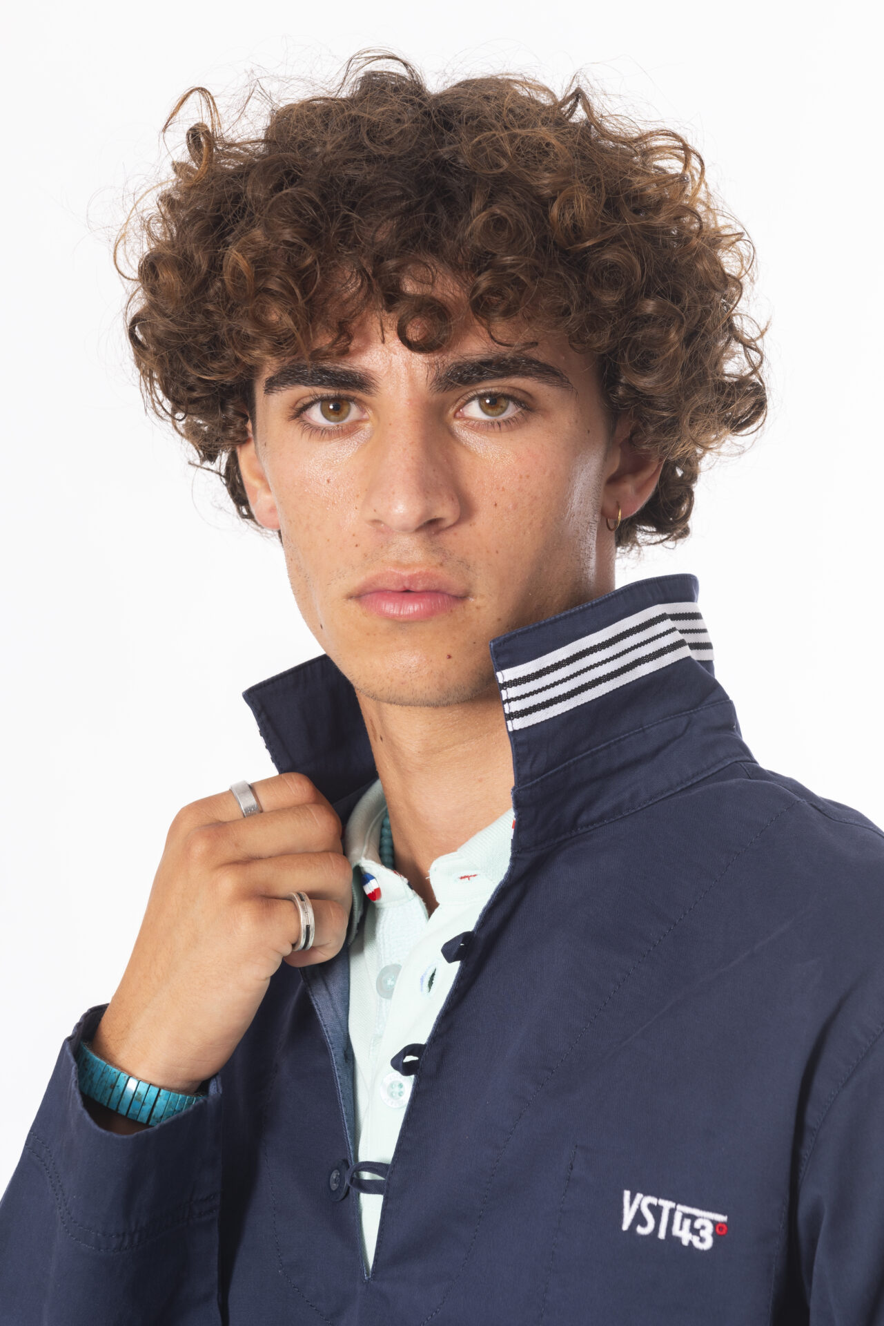L'intérieur en chambray et la tresse rayée contrastée sur l'envers du col ajoutent des détails raffinés à cette pièce, lui conférant une touche de sophistication supplémentaire. Fabriquée avec soin, la vareuse Favio est composée à 97% de coton et 3% d'élasthanne, offrant à la fois confort et souplesse pour une sensation agréable sur la peau.