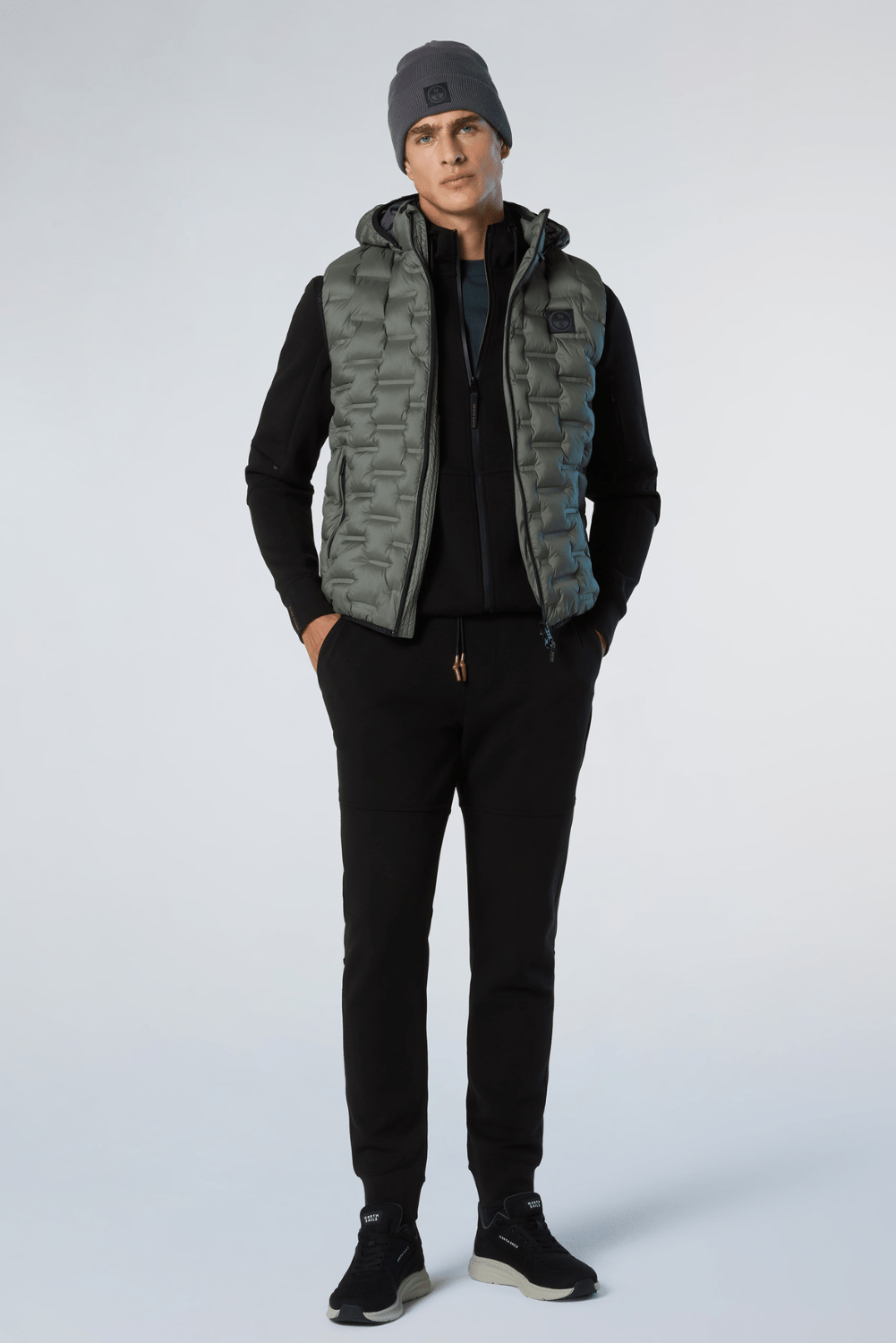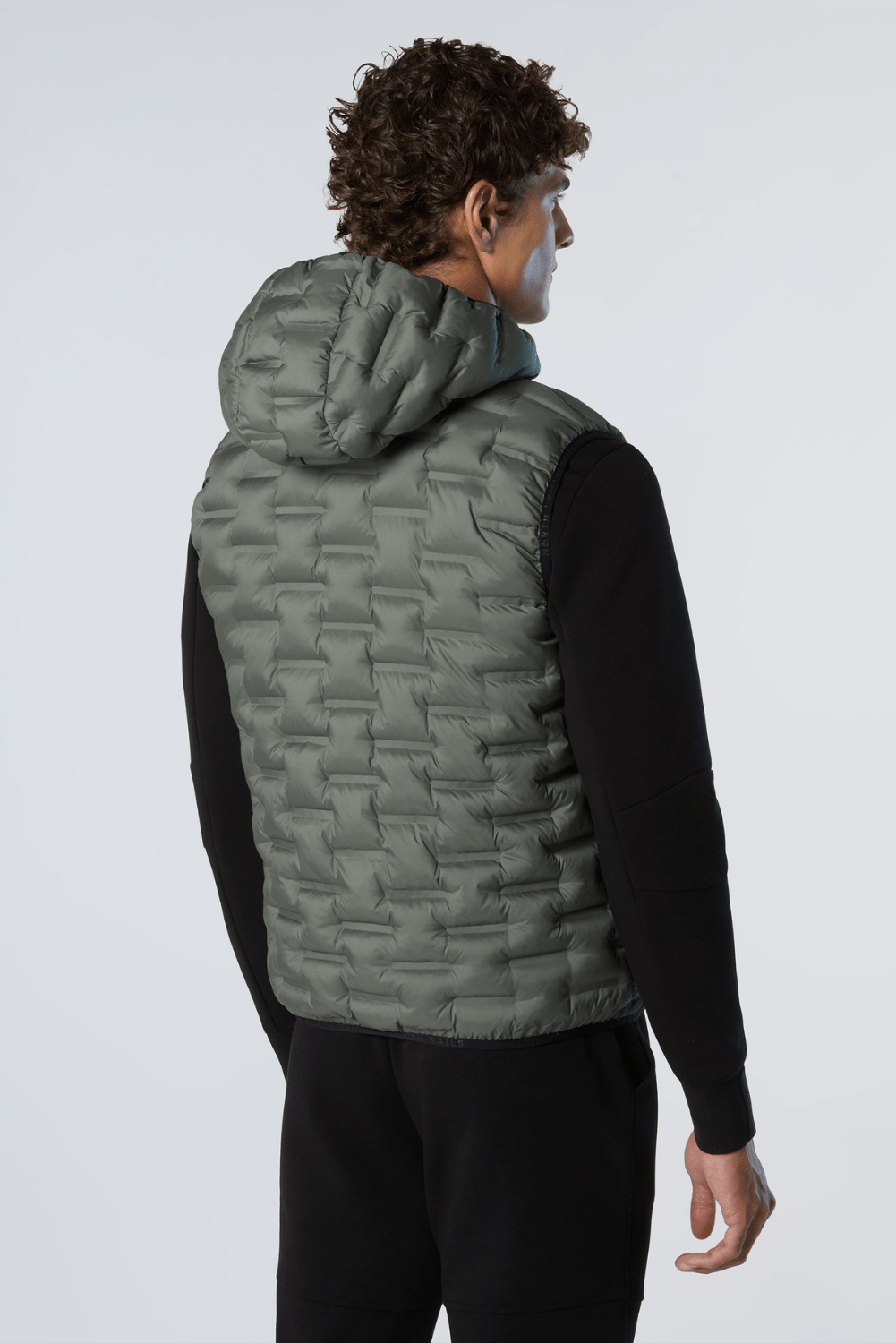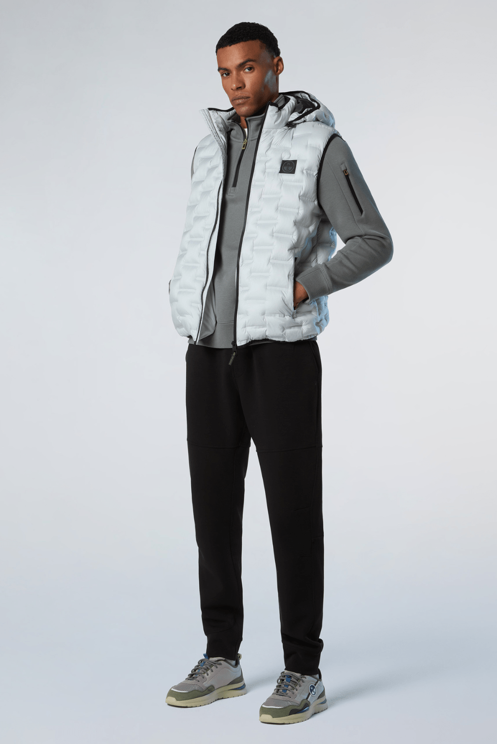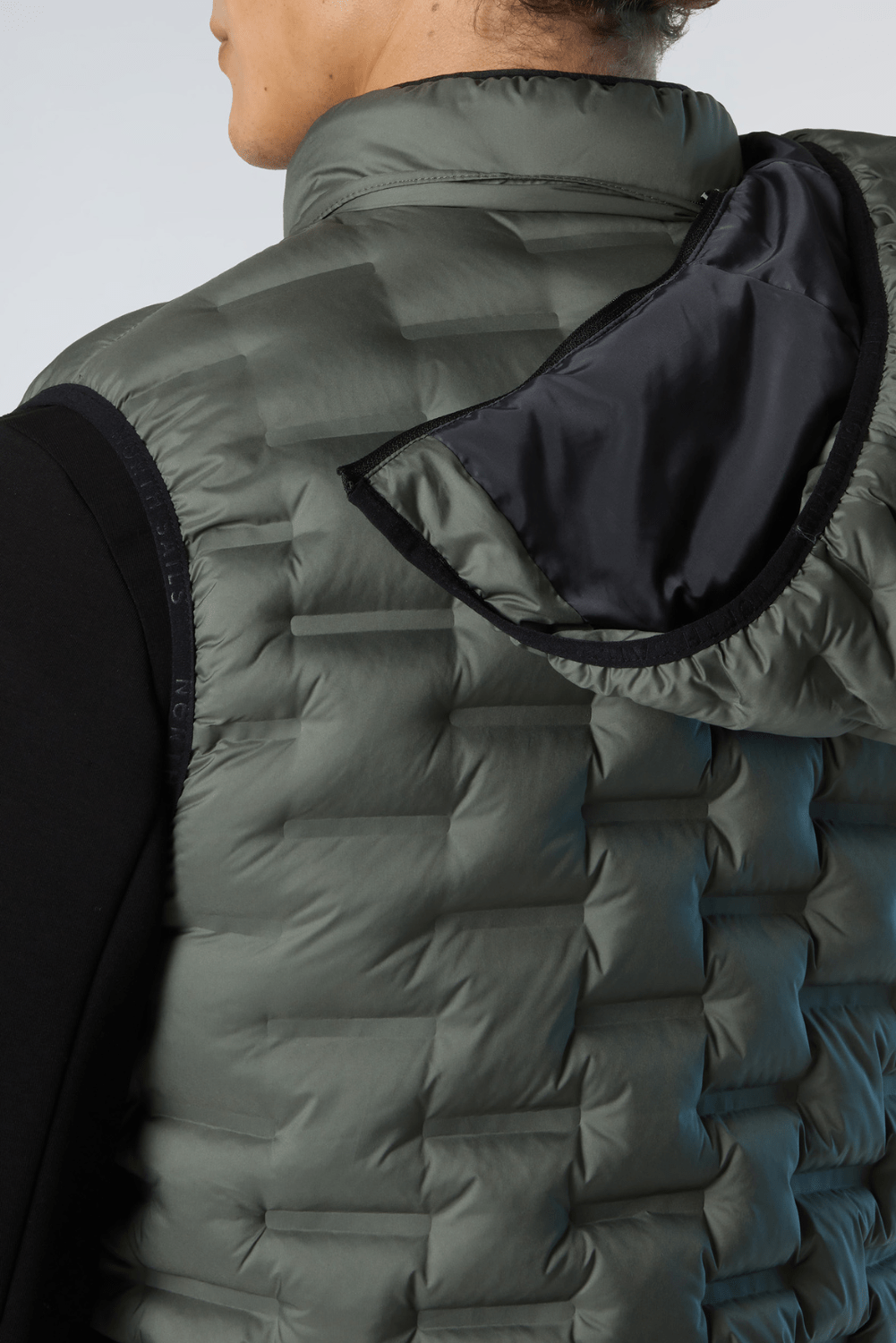 Produit phare de la collection North Tech. Voici l’allié de votre garde-robe de la mi-saison : un maximum de chaleur sans être encombrant. Doté d’un matelassage thermocollé sans couture, ce gilet est fabriqué dans un tissu downproof avec une doublure et un rembourrage recyclés, pour une sensation de légèreté et une empreinte carbone allégée. Il est également muni d’une capuche zippée pour vous protéger de la pluie et d’une poche intérieure pour ranger votre téléphone portable.