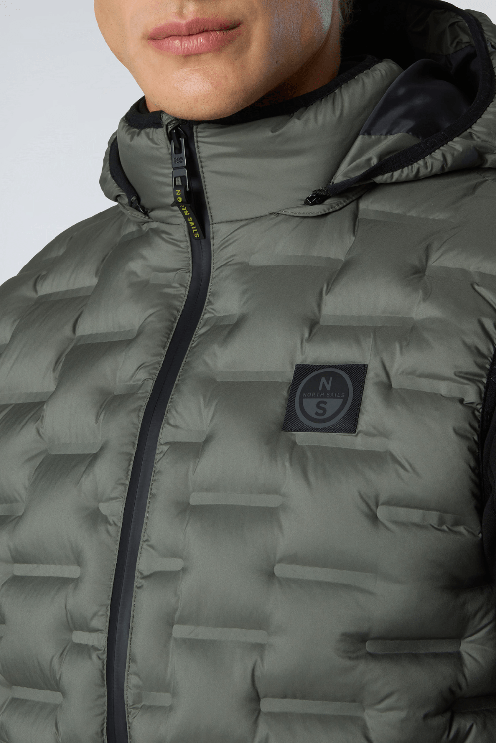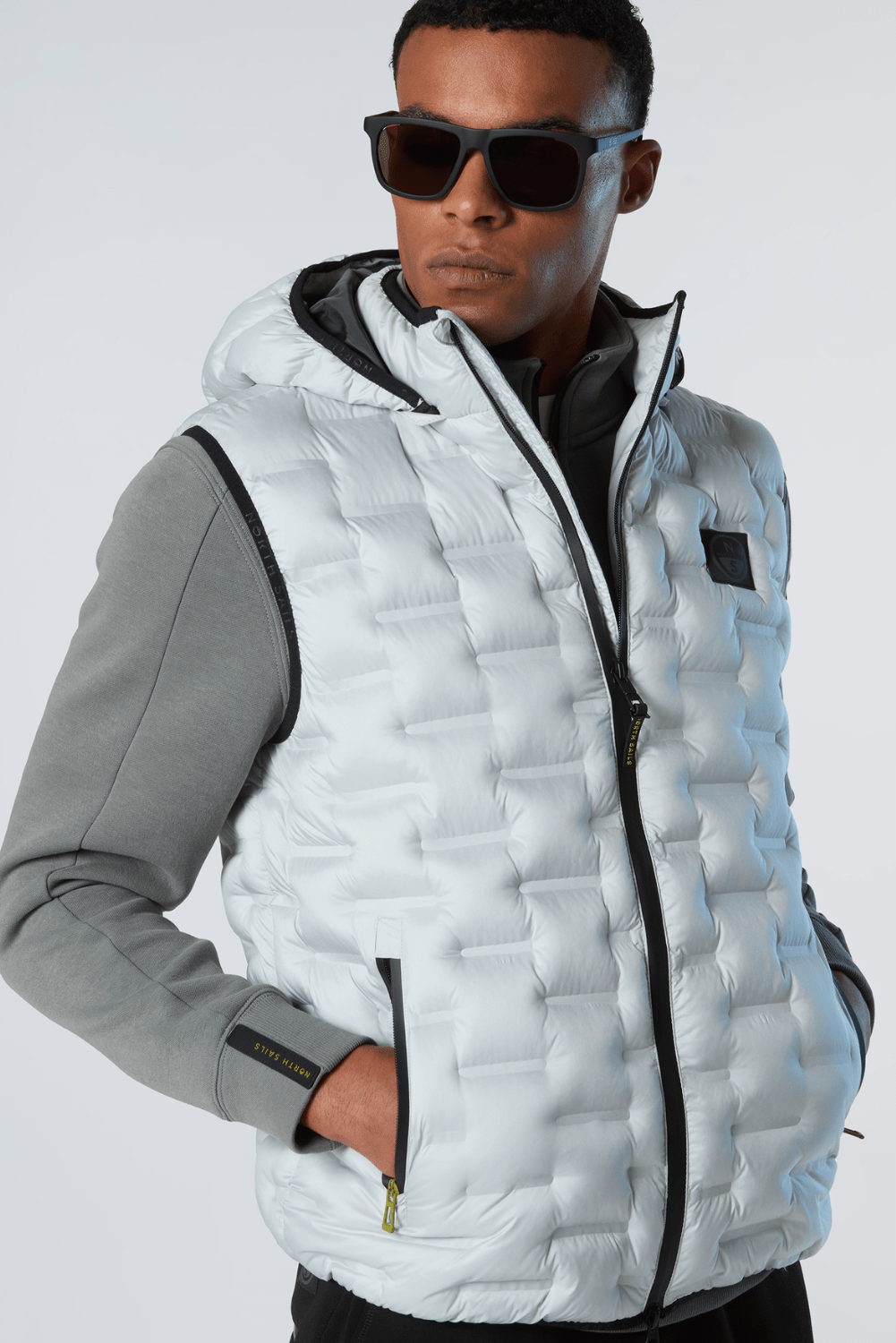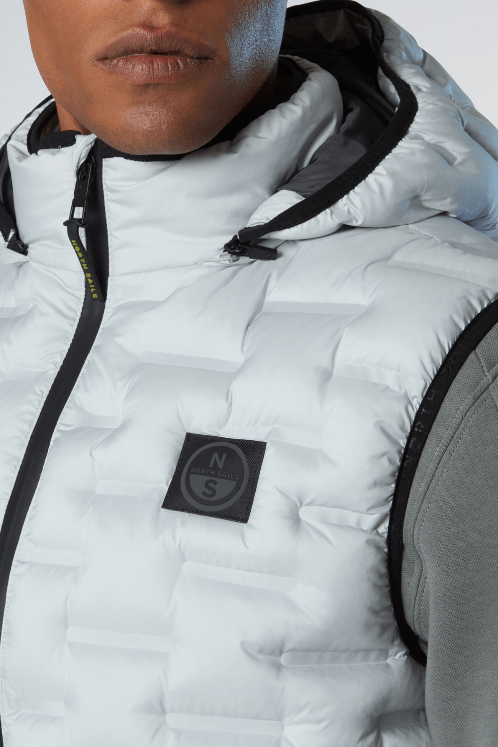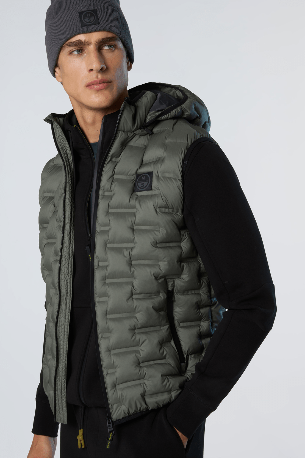 Produit phare de la collection North Tech. Voici l’allié de votre garde-robe de la mi-saison : un maximum de chaleur sans être encombrant. Doté d’un matelassage thermocollé sans couture, ce gilet est fabriqué dans un tissu downproof avec une doublure et un rembourrage recyclés, pour une sensation de légèreté et une empreinte carbone allégée. Il est également muni d’une capuche zippée pour vous protéger de la pluie et d’une poche intérieure pour ranger votre téléphone portable.