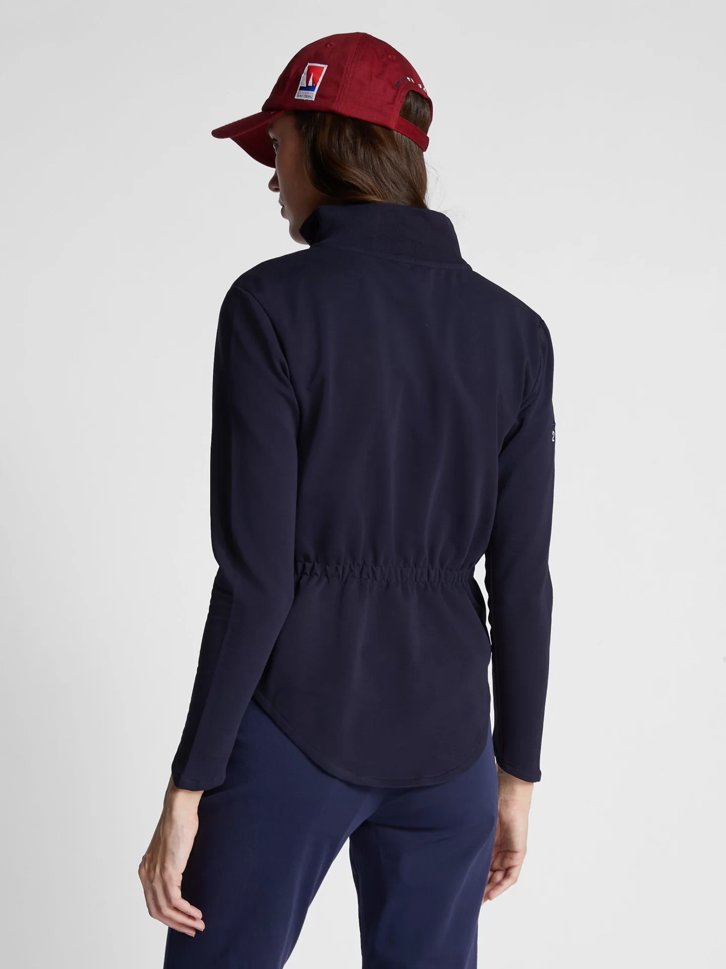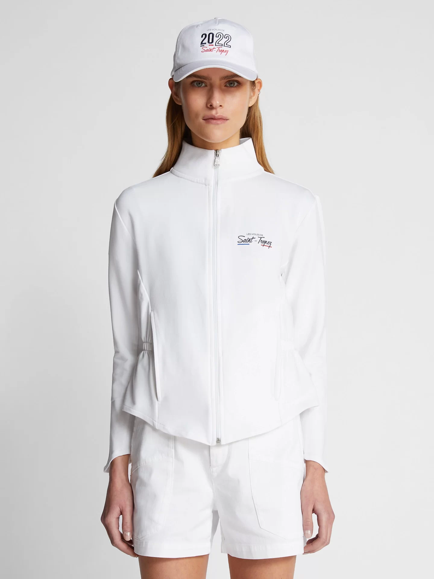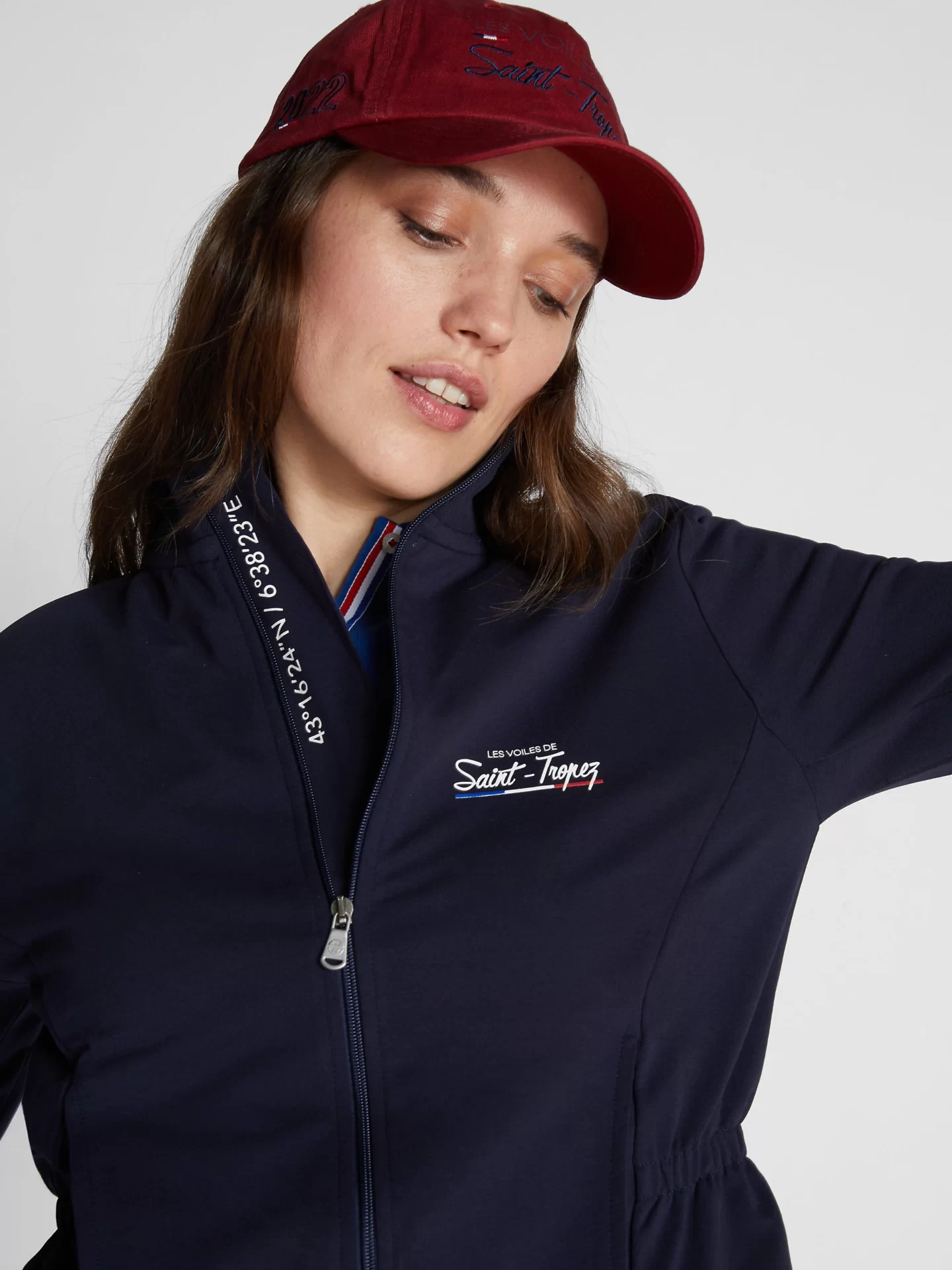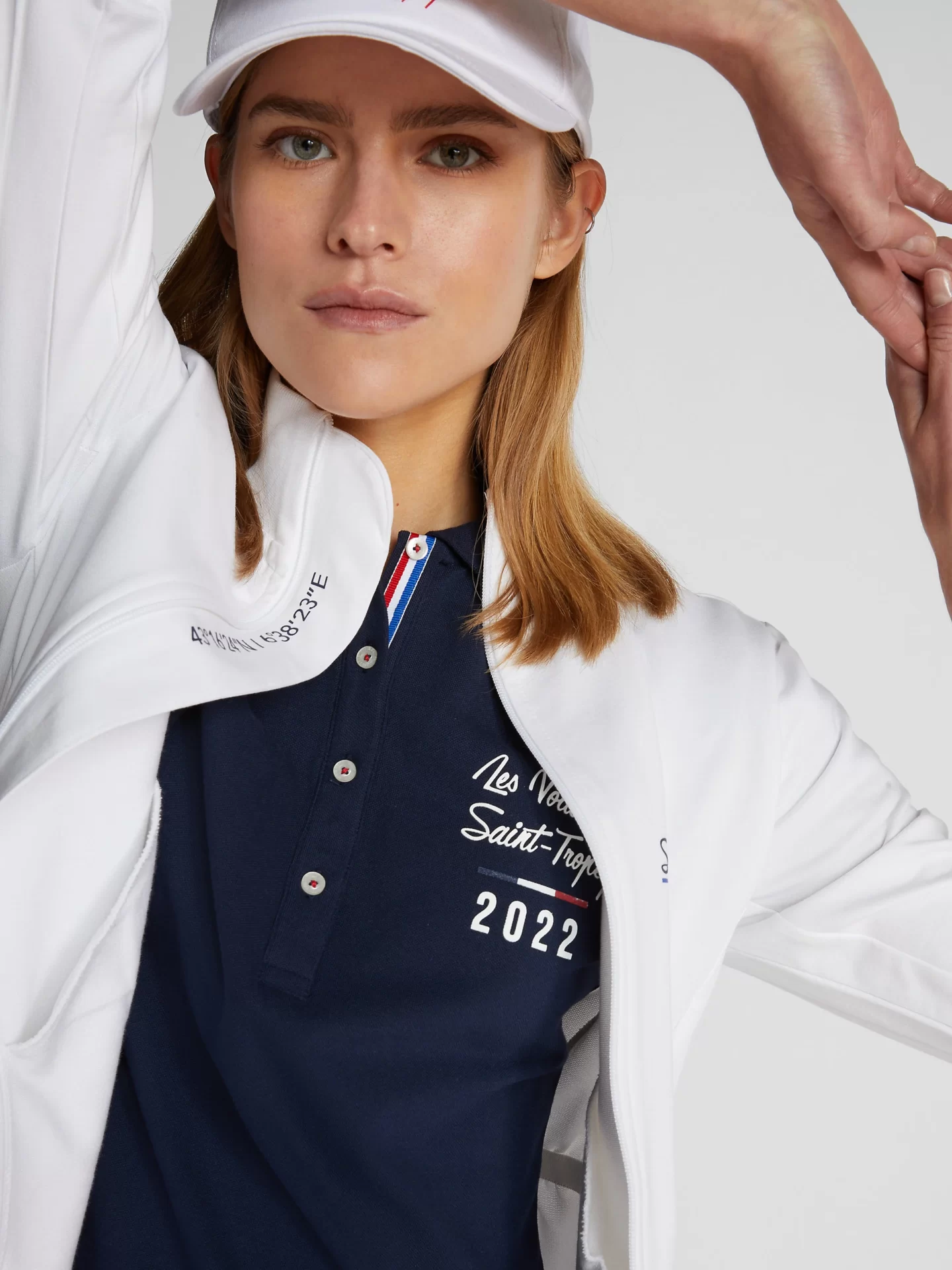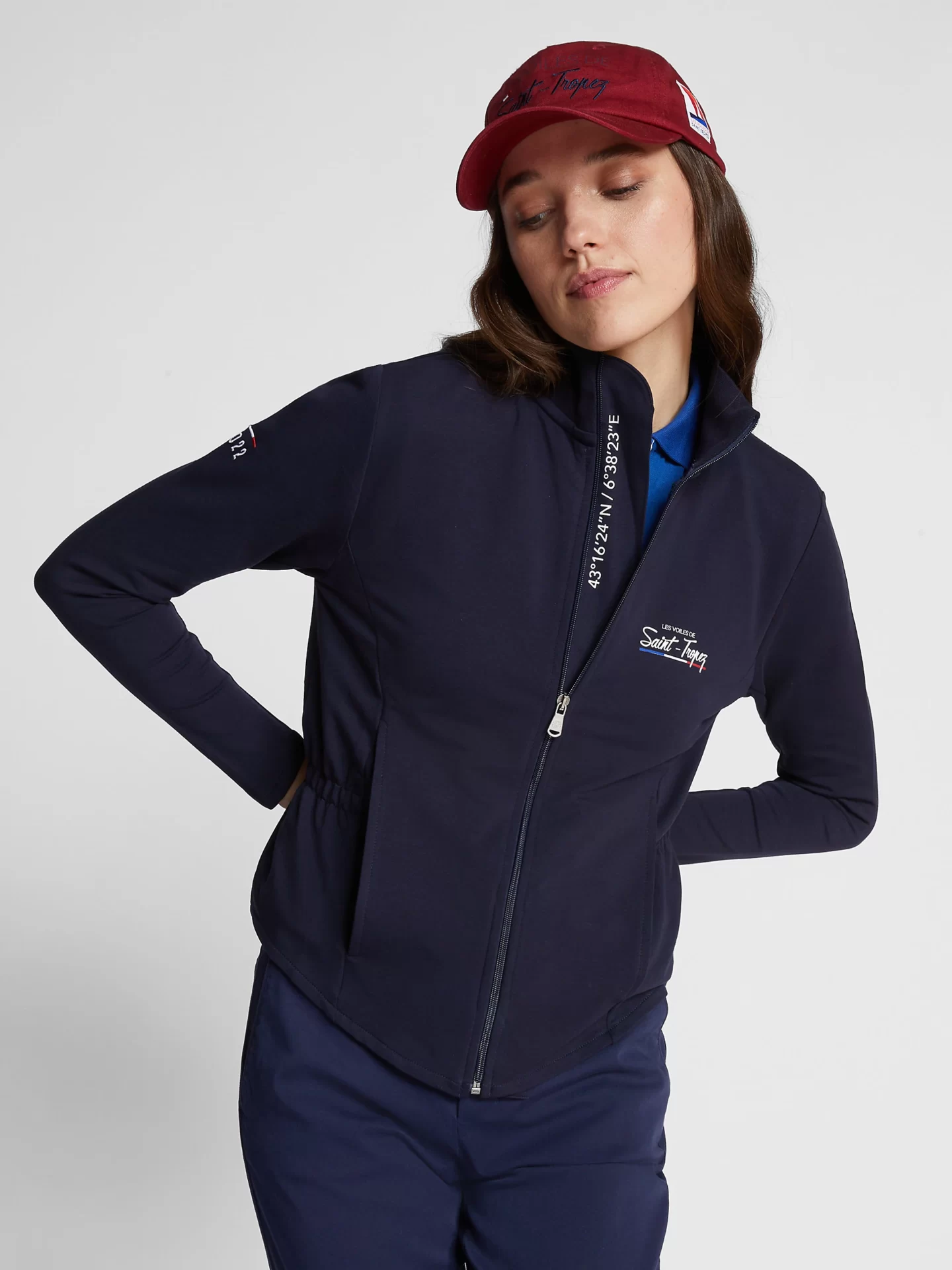 Le produit qu’il vous faut pour un style féminin ultra polyvalent. Cette veste zippée est parfaite pour les virées en bateau, les voyages et les looks urbains décontractés. Ce sweat-shirt est fabriqué en molleton de coton biologique certifié, conçu selon des principes socialement responsables et écologiques, sans utilisation de substances nocives. Il se distingue par une taille élastique qui accentue la silhouette. Les liserés côtelés et les poches zippées ajoutent une touche sportive. Il présente également des éléments graphiques et des finitions inspirées par la régate Les Voiles de Saint-Tropez.