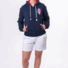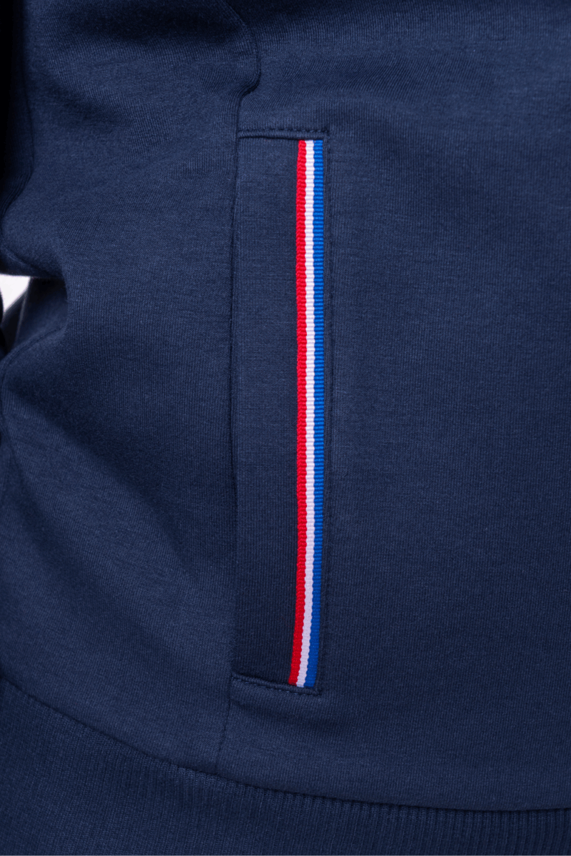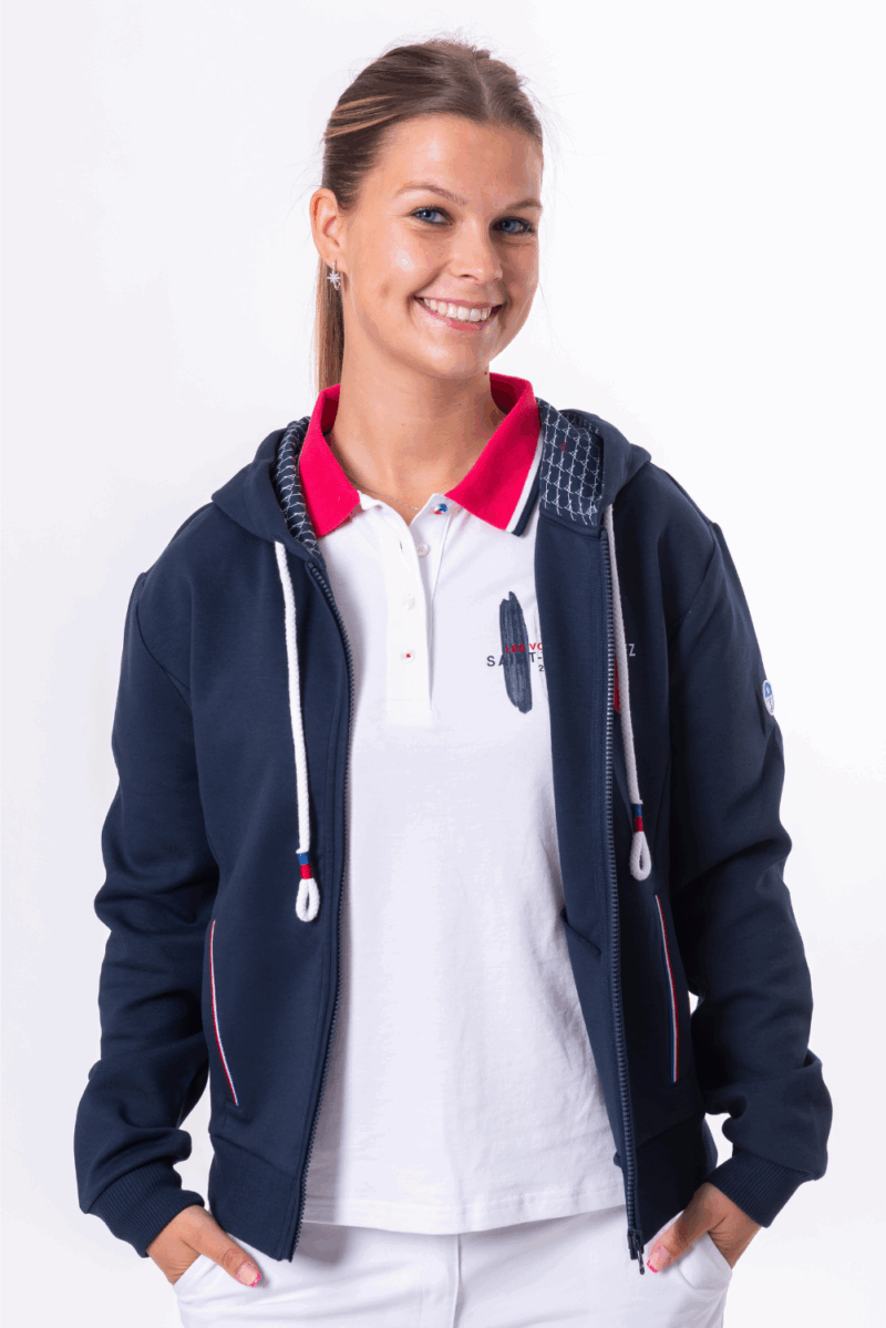 Parfait avec un jean ou un jogging, ce sweat zippé à capuche fait partie de la collection Les Voiles de Saint-Tropez. Fabriqué en coton interlock mélangé pour une sensation douce et respirante, il est agrémenté d’un imprimé sur la poitrine célébrant la régate de cette année. Coordonnées GPS de l’événement et de Saint Tropez sur la capuche.